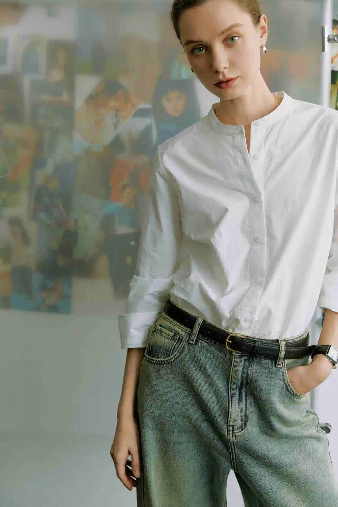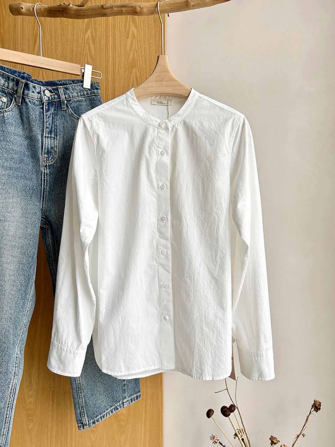 亲肤柔顺的「棉感简约小圆领衬衫」穿在身上真的舒服到起飞!