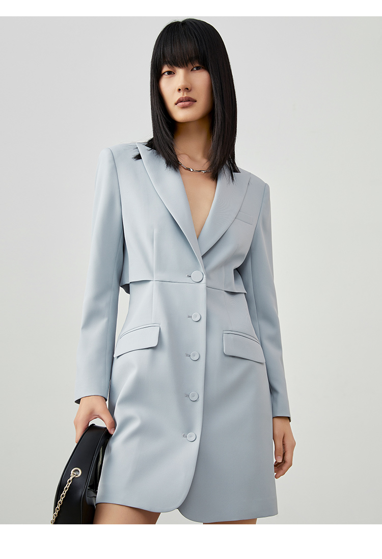 EITIE爱特爱春季新款气质翻领镂空蕾丝七分袖连衣裙女中裙A2007405