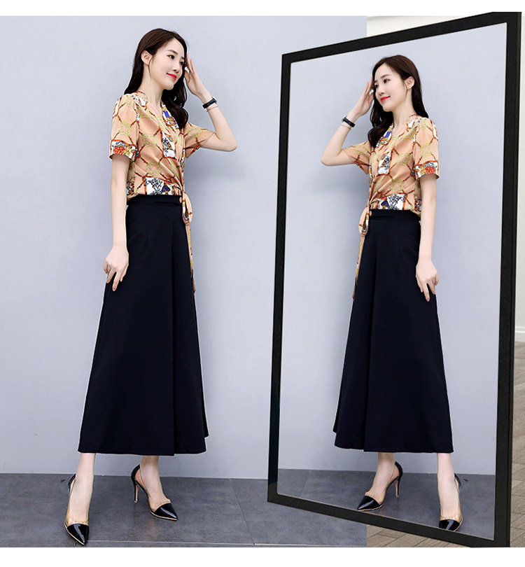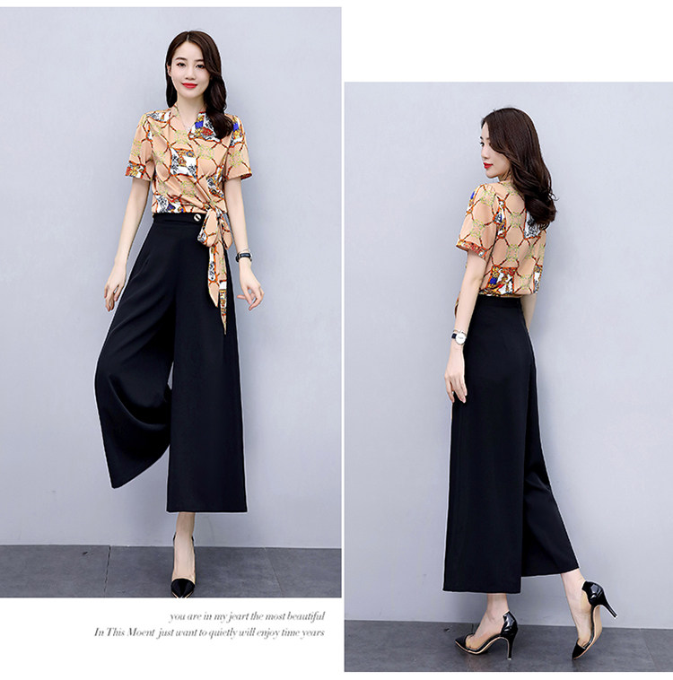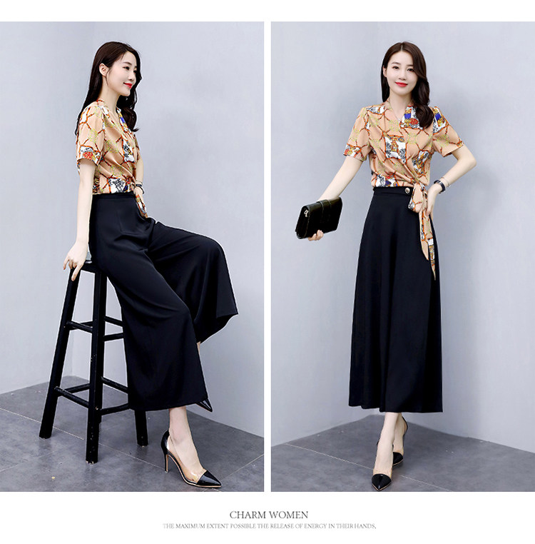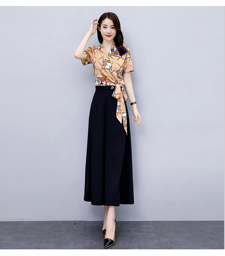 WZNH-TZL2022夏季时尚V领上衣收腰显瘦气质两件套