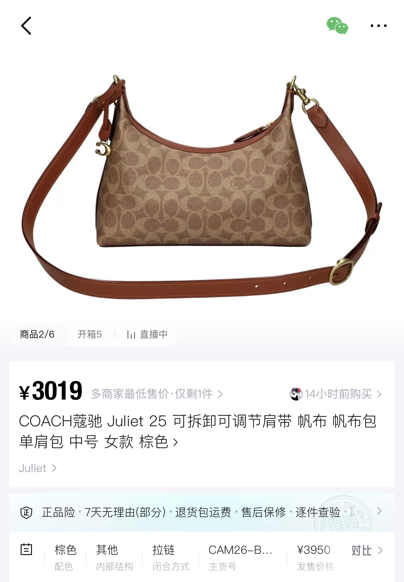 奥莱订单剩余,独家发售 C0A蔻驰Juliet25系列女士经典老花单肩斜挎包