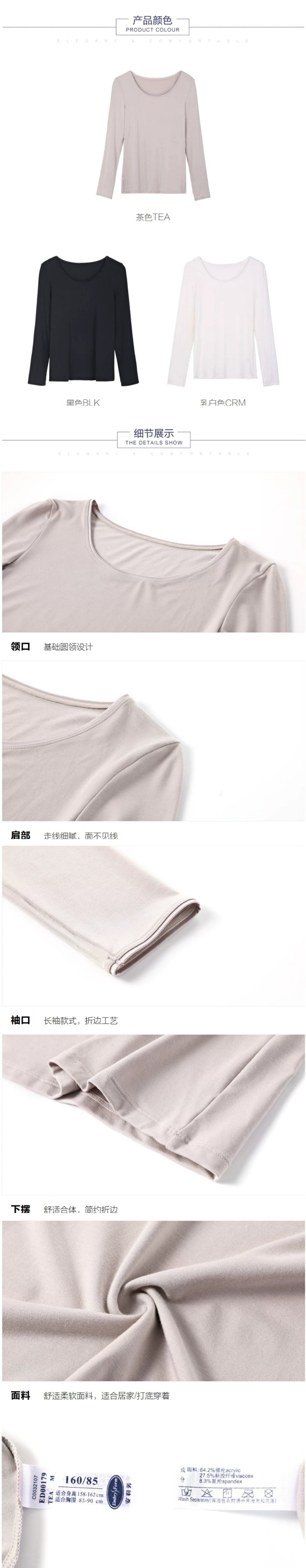 安莉芳女士秋冬基础薄款圆领打底衫抑菌舒适保暖上衣秋衣ED00179