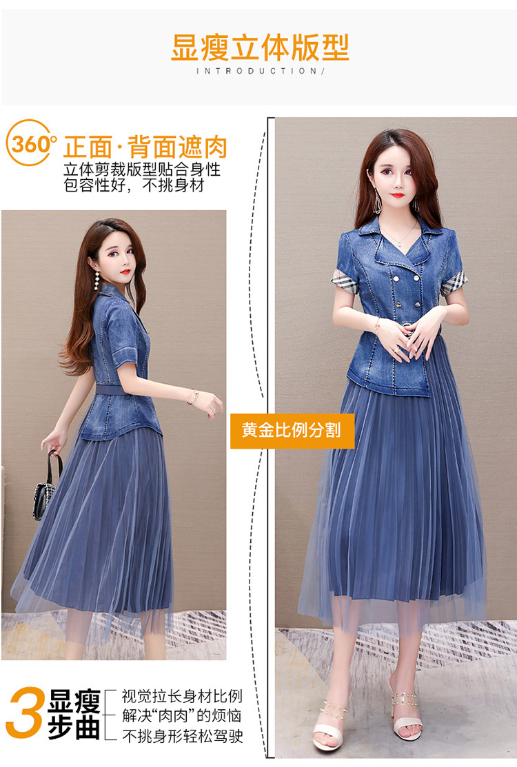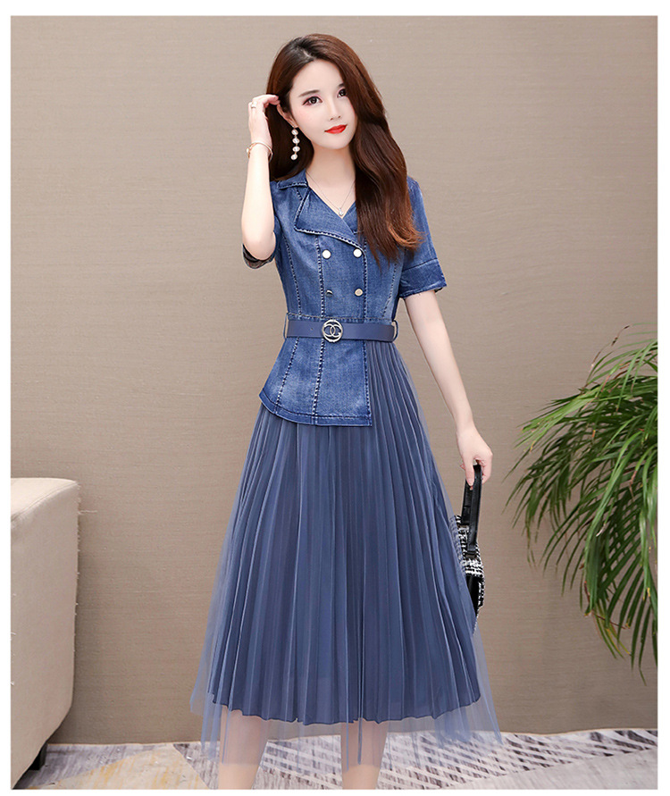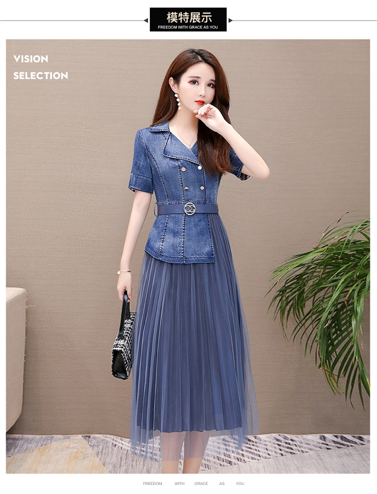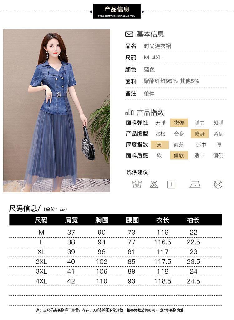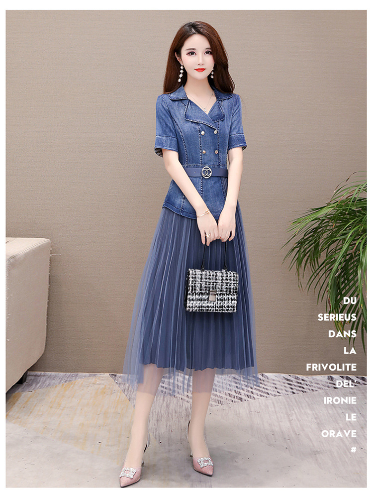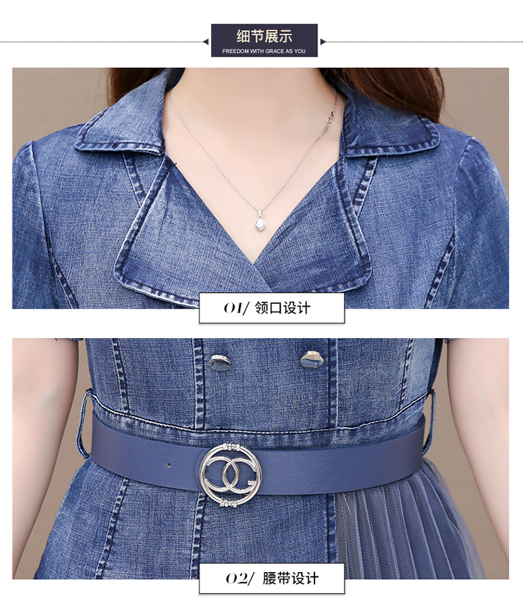 YWE-KED91065新款韩版修身气质高贵短袖网纱牛仔连衣裙TZW