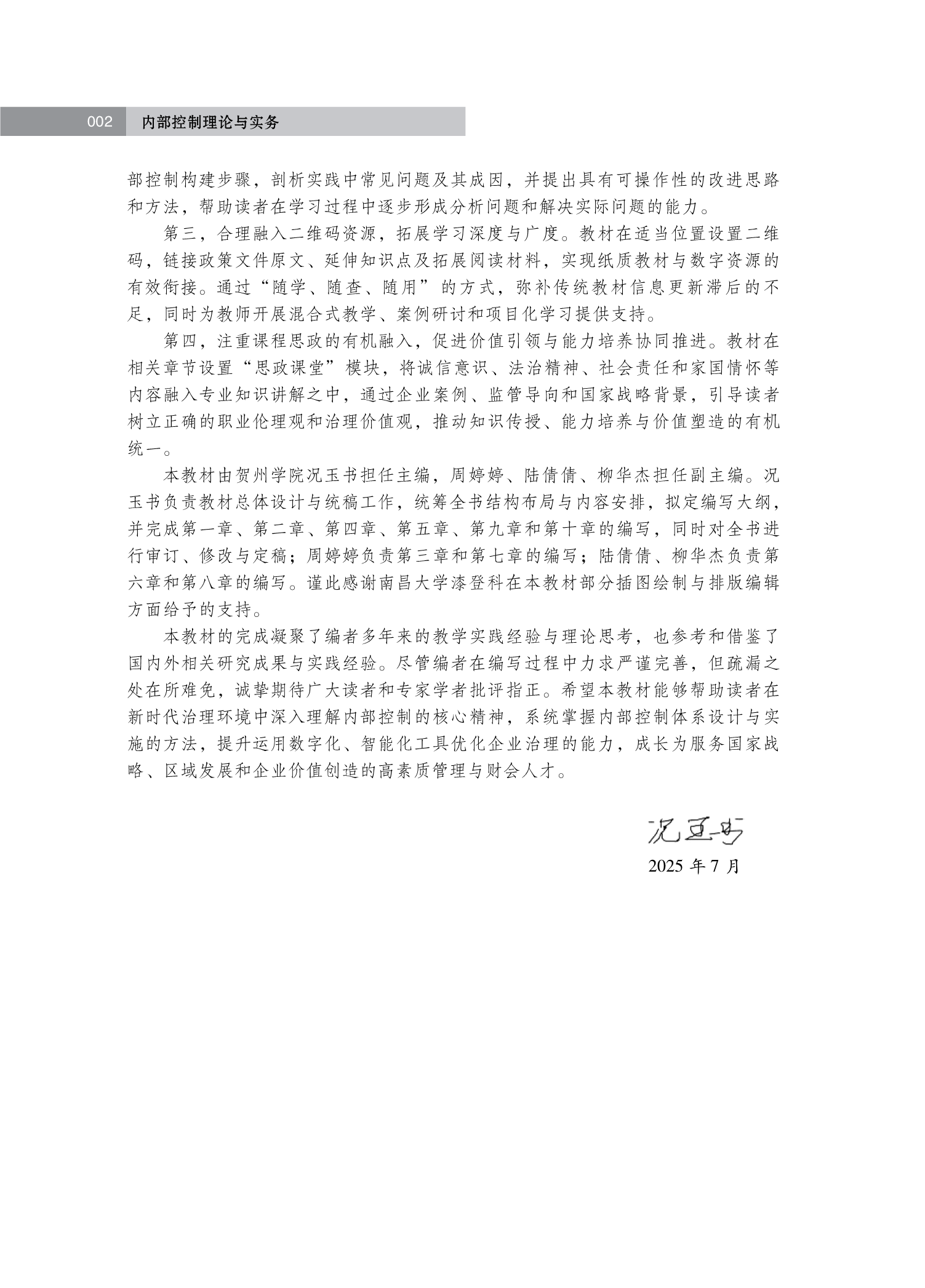 第二,突出实践导向,强化应用能力培养。教材强调理论与实务的深度融合,在各章节中穿插典型案例、业务流程图、内控设计示例和情境化分析,系统梳理内部控制构建步骤,剖析实践中常见问题及其成因,并提出具有可操作性的改进思路和方法,帮助读者在学习过程中逐步形成分析问题和解决实际问题的能力。