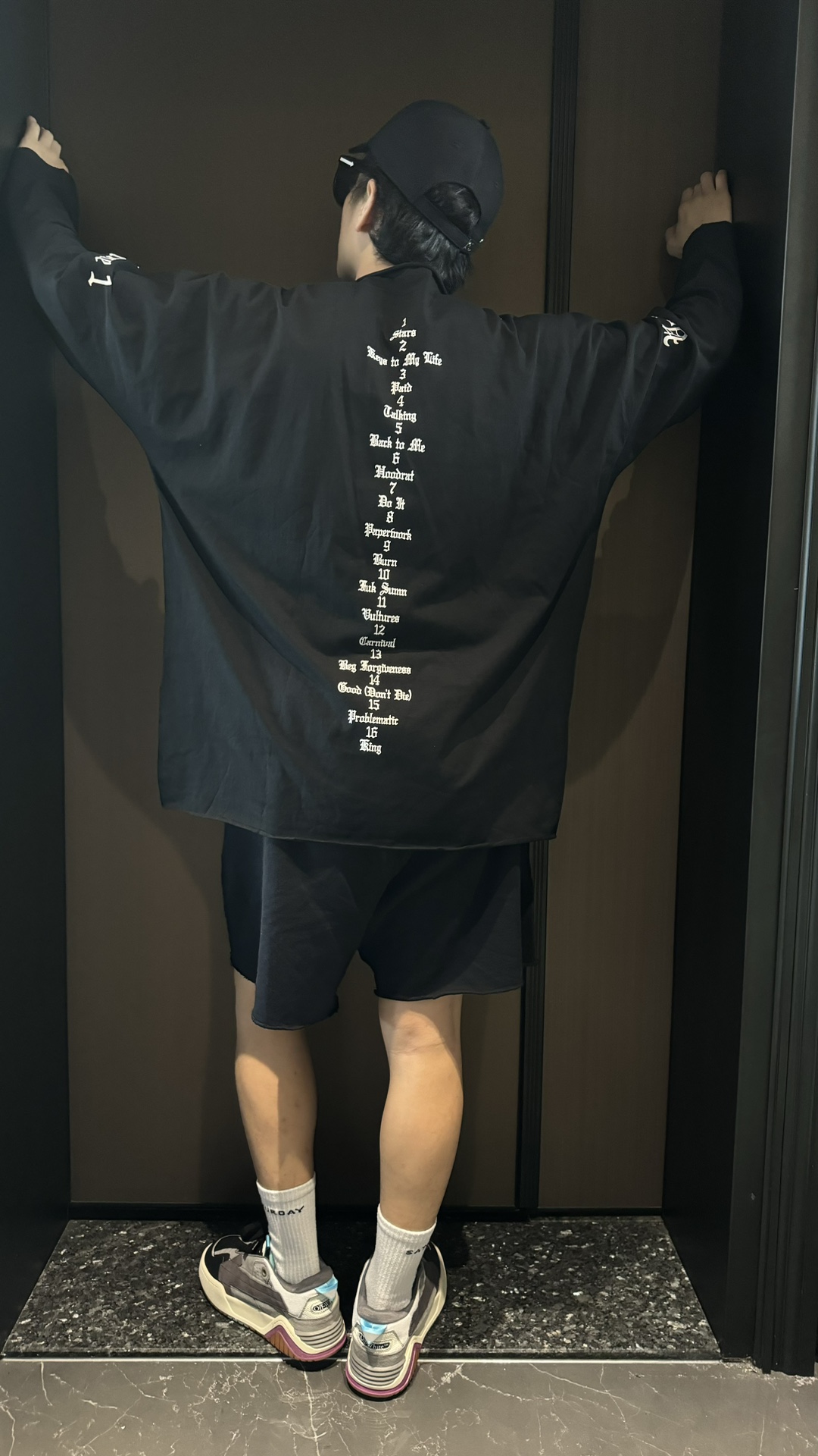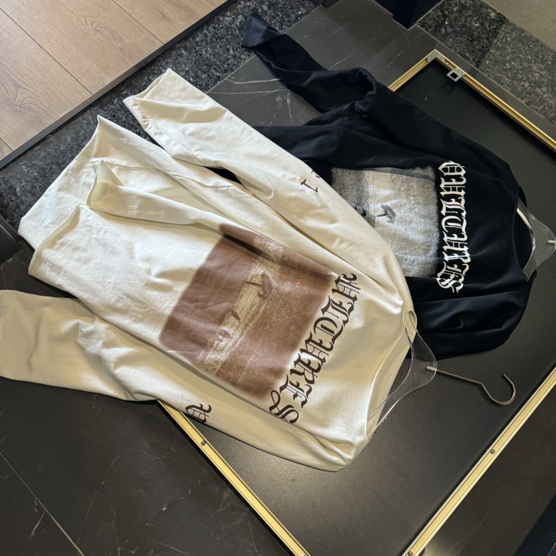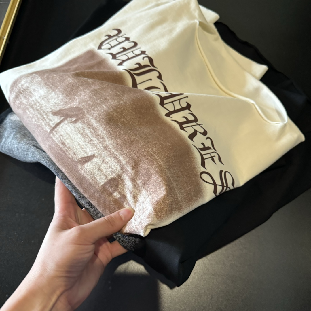 这一系列采用的面料 非常重磅 整体厚重 拿到手就是沉甸甸的感觉 毕竟搭上了这样的奢侈品牌后 伴随着售价的提升 做工与用料自然也下足功夫 按足原版定制重磅280g 纯棉面料 整件衣服非常厚重 与其说他是短袖t恤 不如直接当成套头卫衣看待