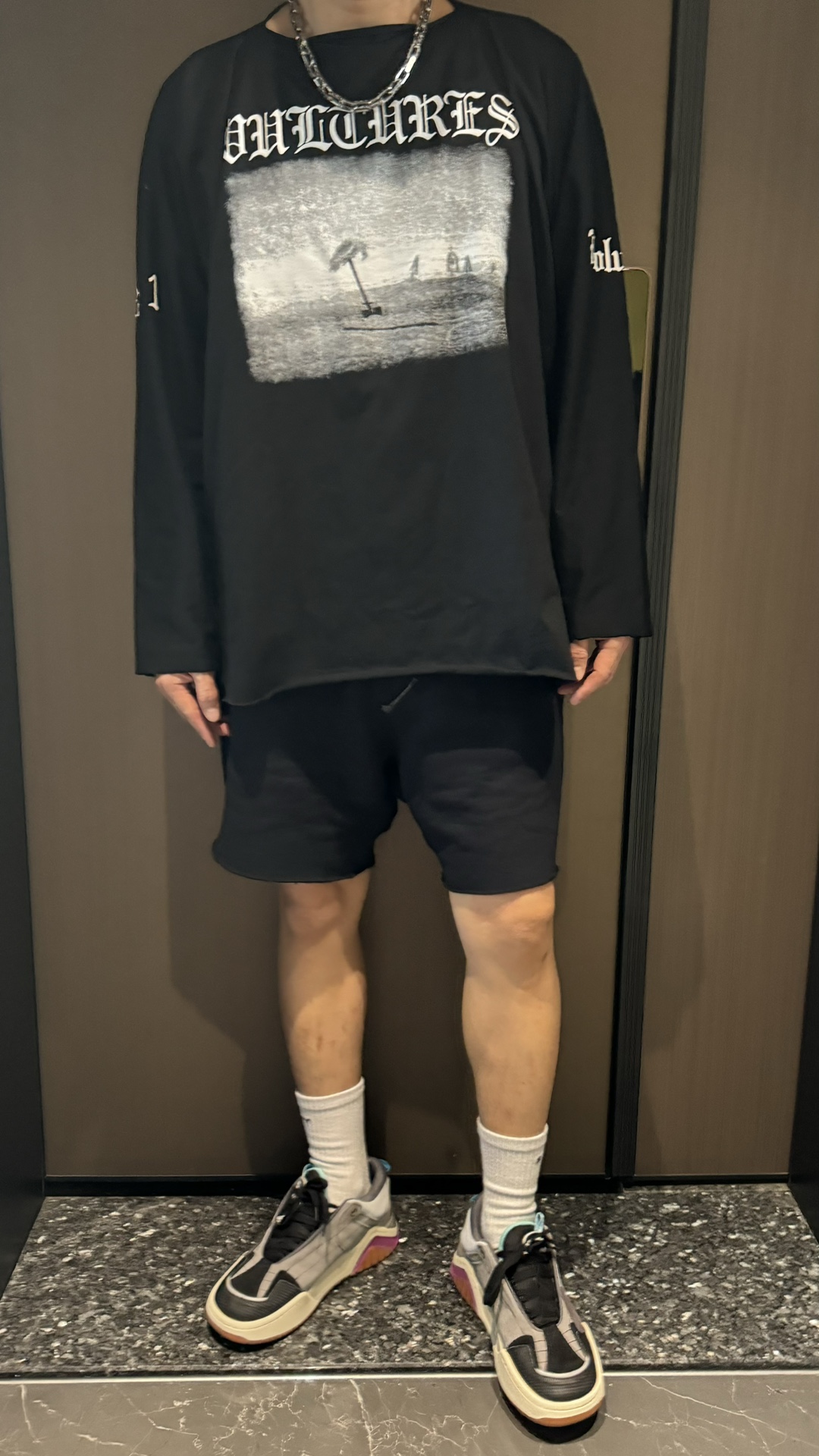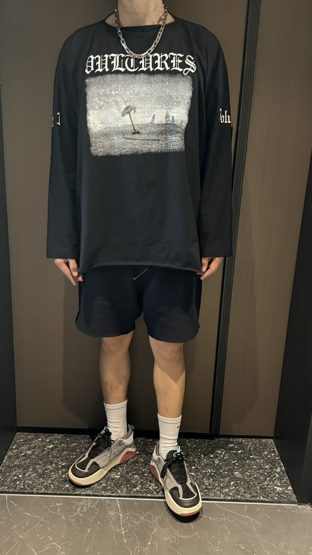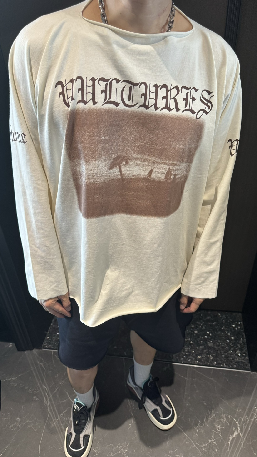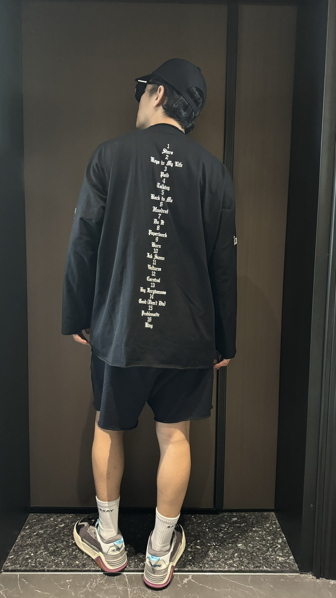 这一系列采用的面料 非常重磅 整体厚重 拿到手就是沉甸甸的感觉 毕竟搭上了这样的奢侈品牌后 伴随着售价的提升 做工与用料自然也下足功夫 按足原版定制重磅280g 纯棉面料 整件衣服非常厚重 与其说他是短袖t恤 不如直接当成套头卫衣看待