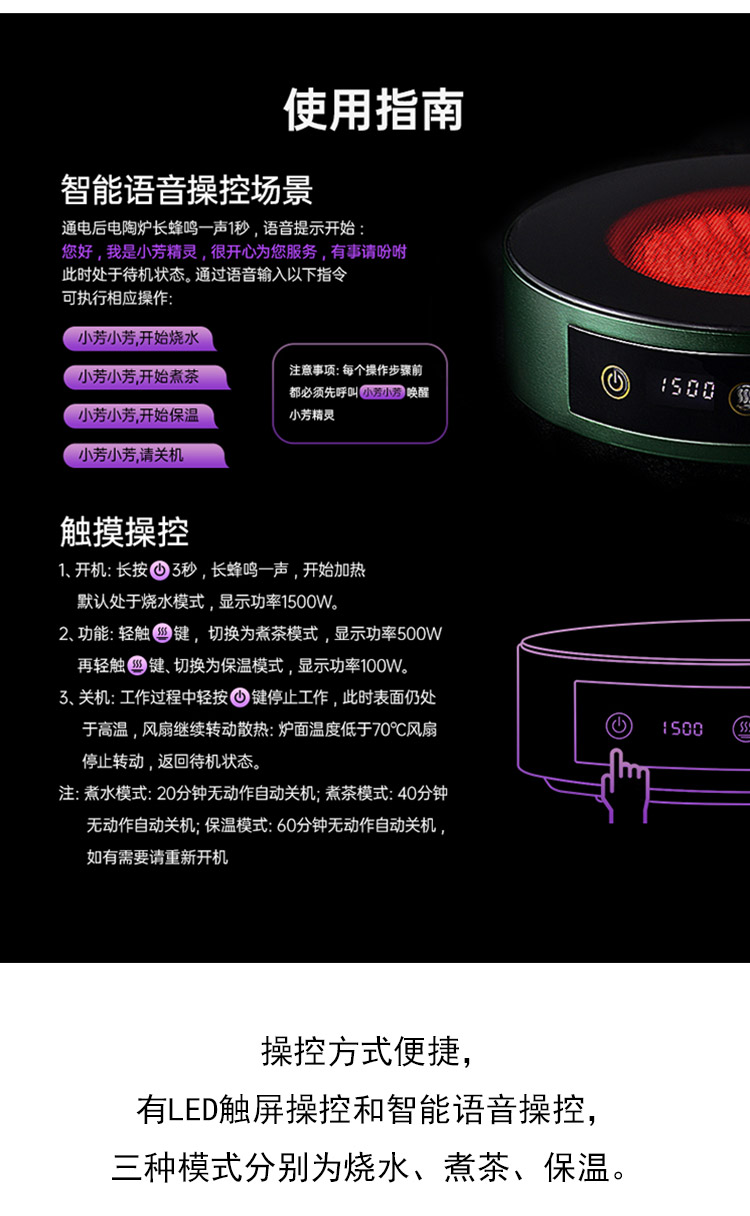 茶香记 晋芳小芳精灵智能电陶炉 语音触屏操控 三种模式
