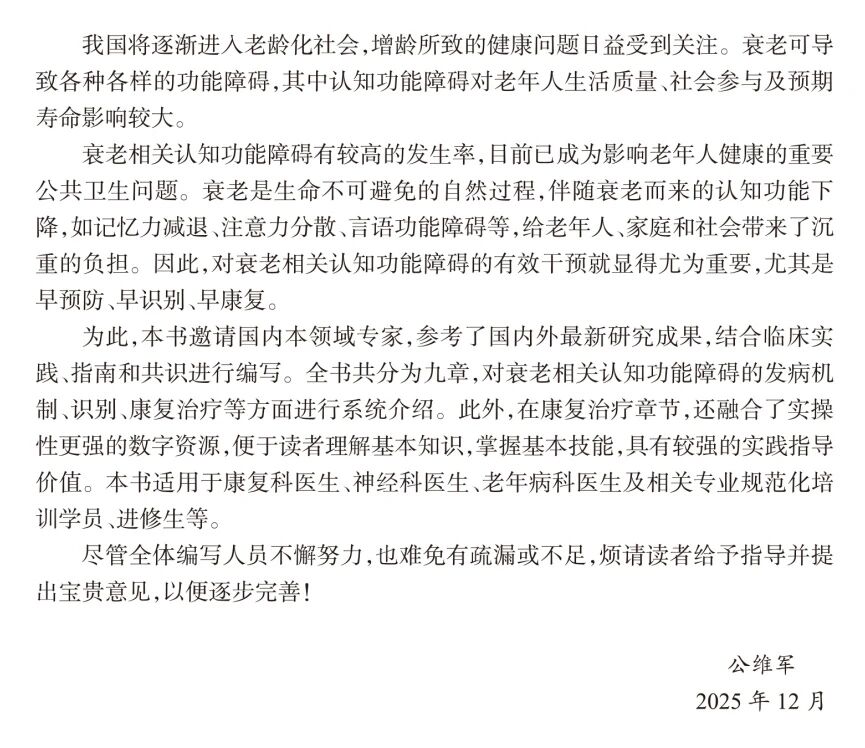 全书强调衰老相关认知功能障碍的识别要点和康复治疗,注重相关理论和知识的系统论述。