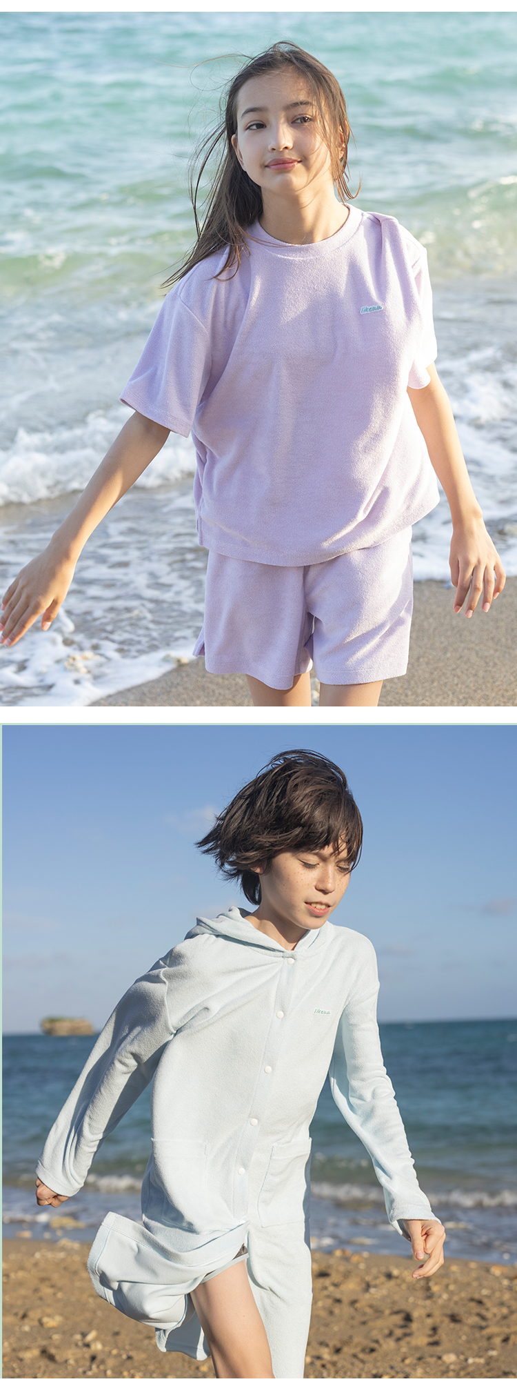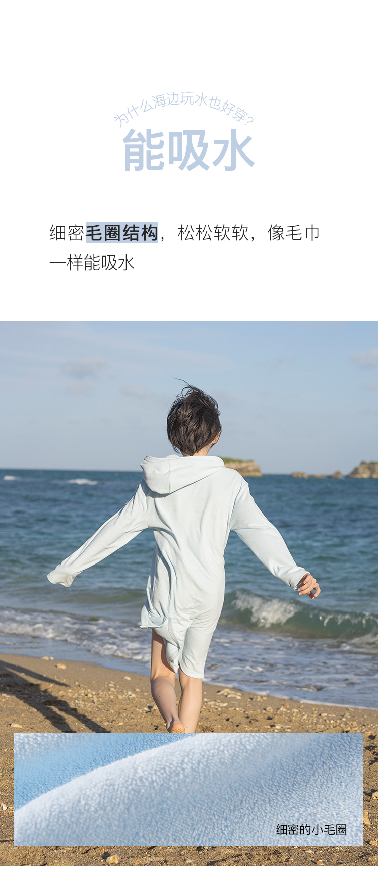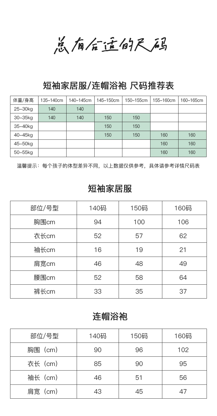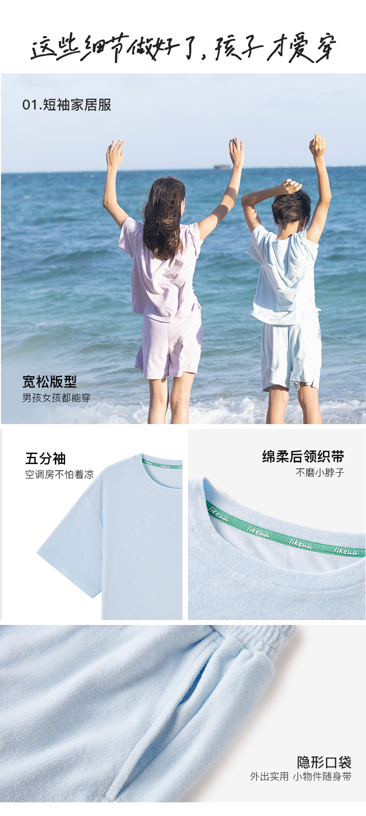 likeuu男女童家居服毛巾布家居短袖套装睡衣儿童连帽浴袍游泳夏季ZY