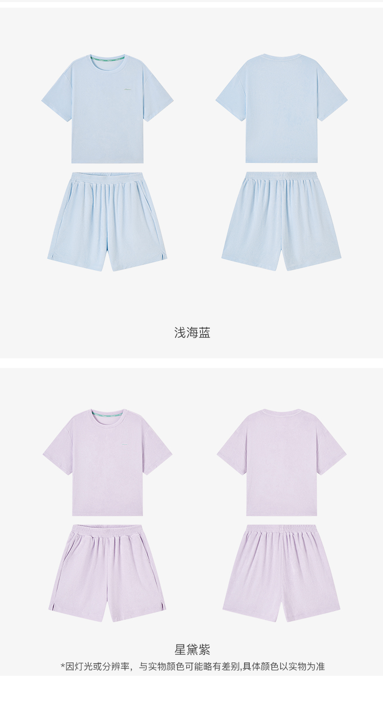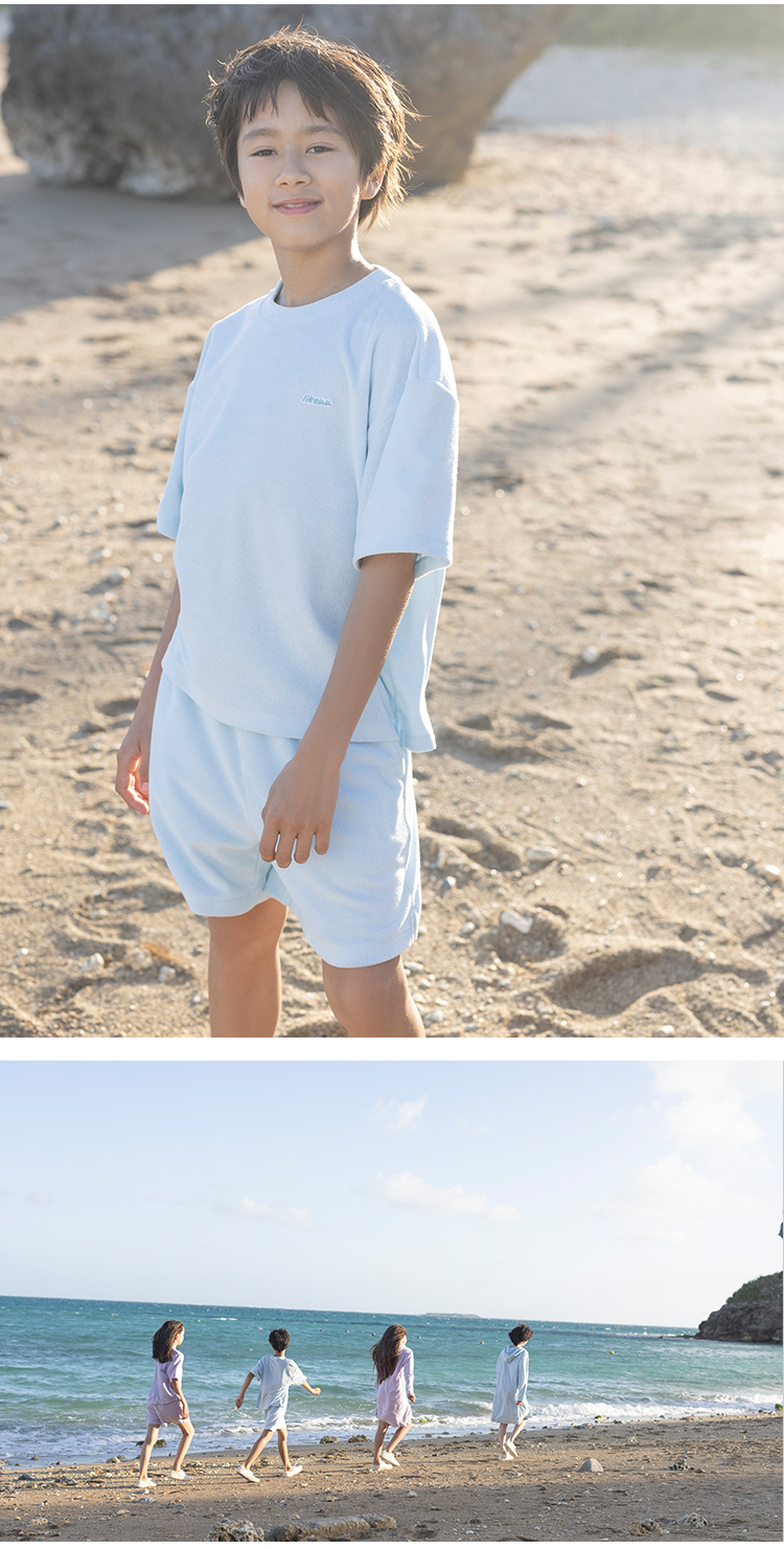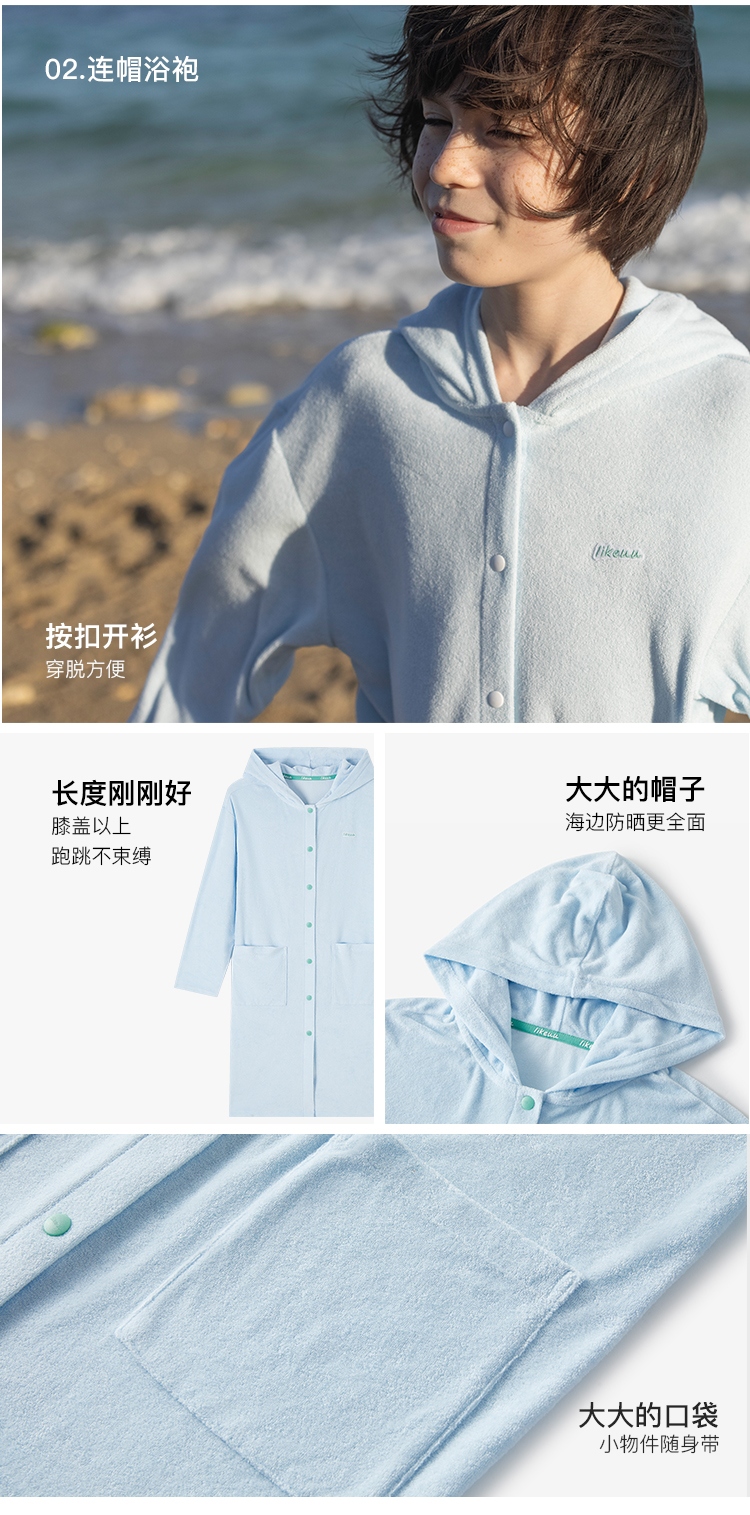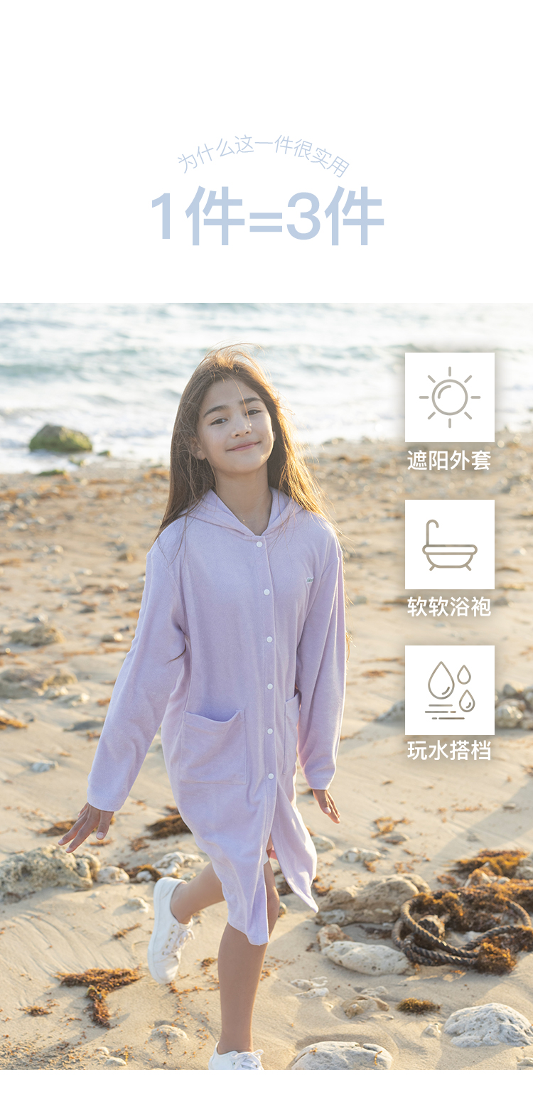 likeuu男女童家居服毛巾布家居短袖套装睡衣儿童连帽浴袍游泳夏季ZY