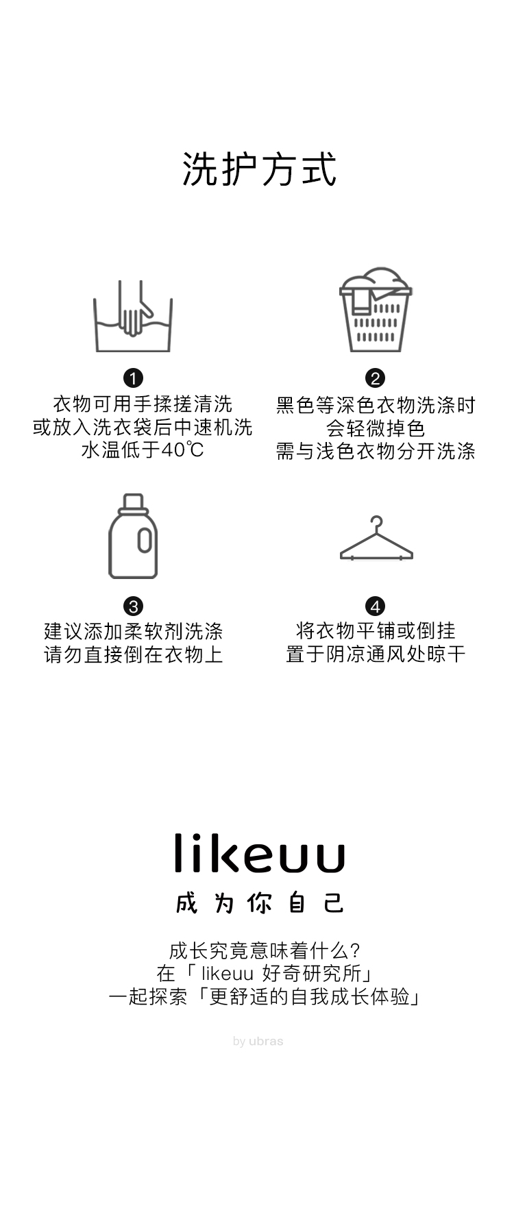 - likeuu是专注于为6~15岁的青少年创造柔软、无束缚的成长体验,以好奇心为灵感的成长发育期贴身衣物品牌。likeuu的产品覆盖内衣、内裤、保暖衣、家居服、运动等品类。