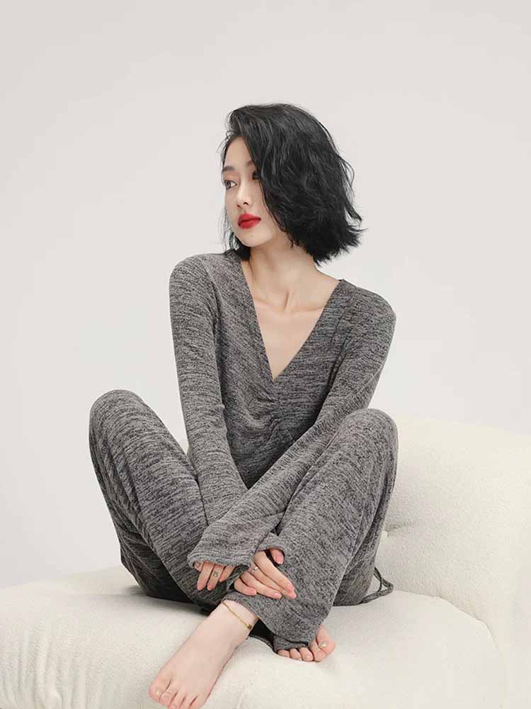 V领设计也很显瘿,拉长脖颈修饰线条~