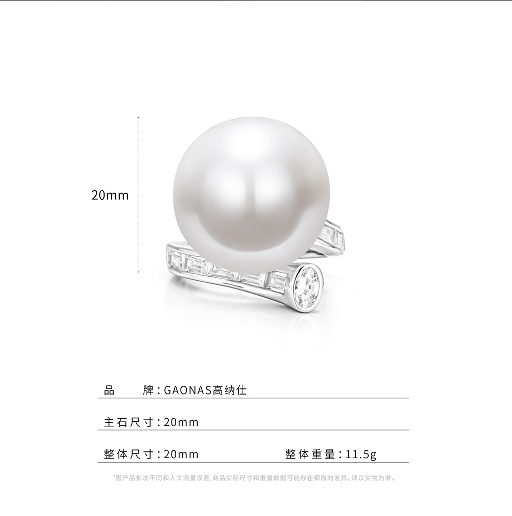 GAONAS 仿珍珠戒指 经典贵气优雅百搭白色珠20mm戒指