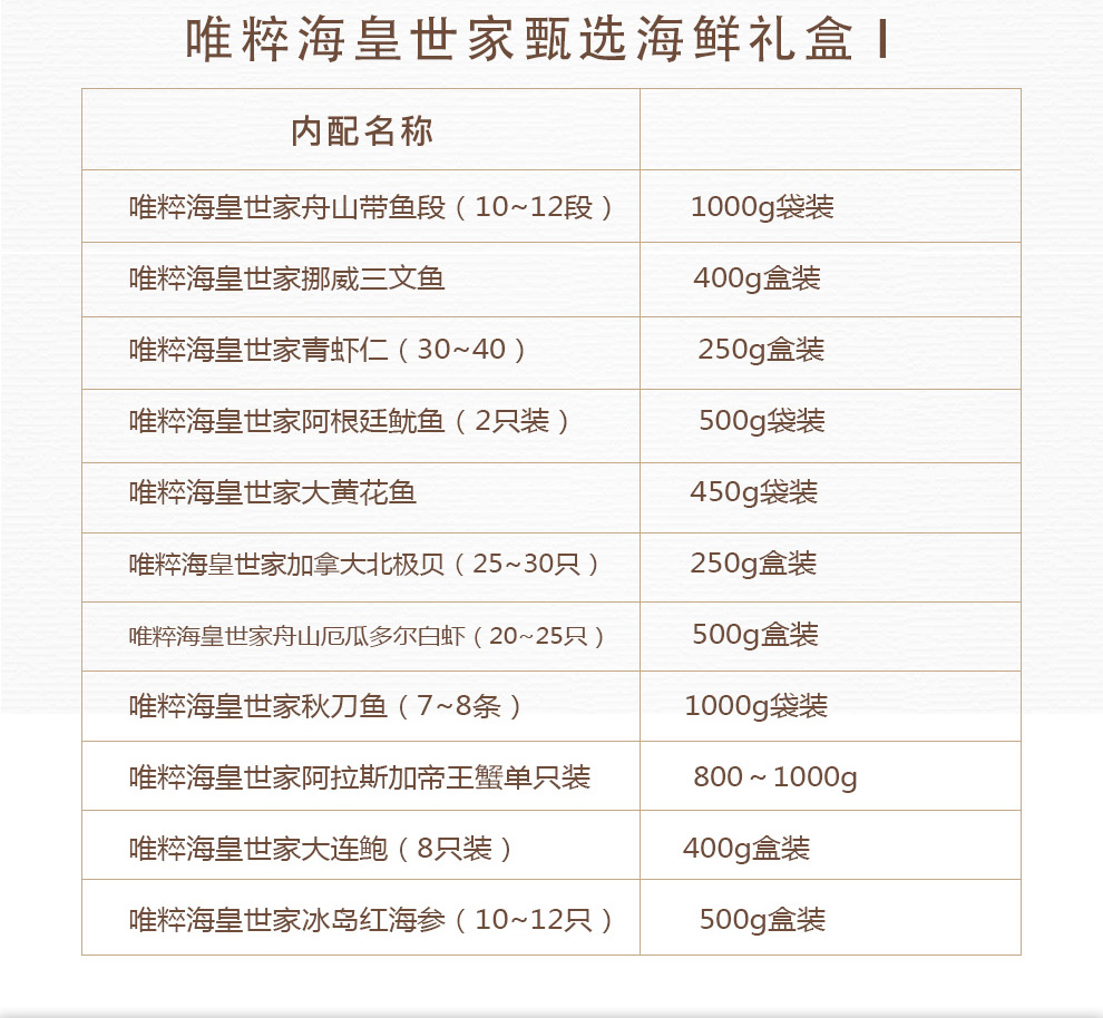 唯粹海皇世家甄选海鲜礼盒 I型