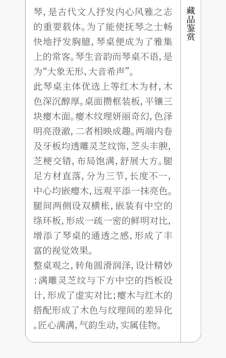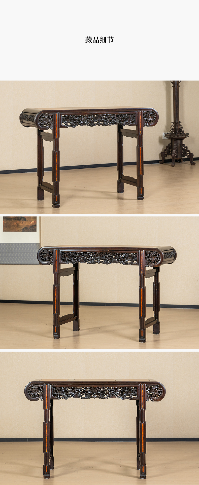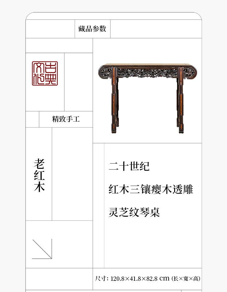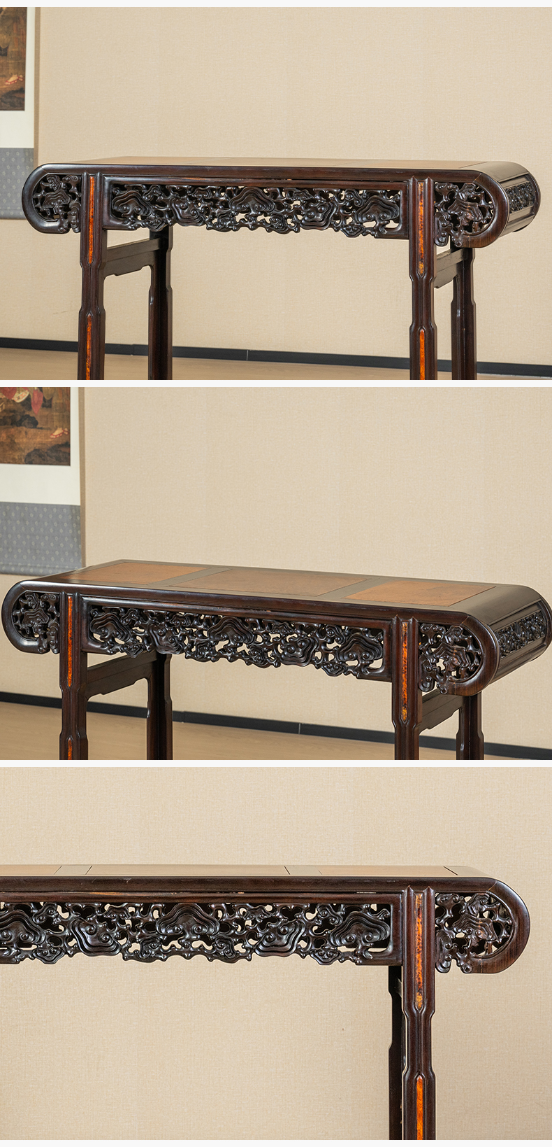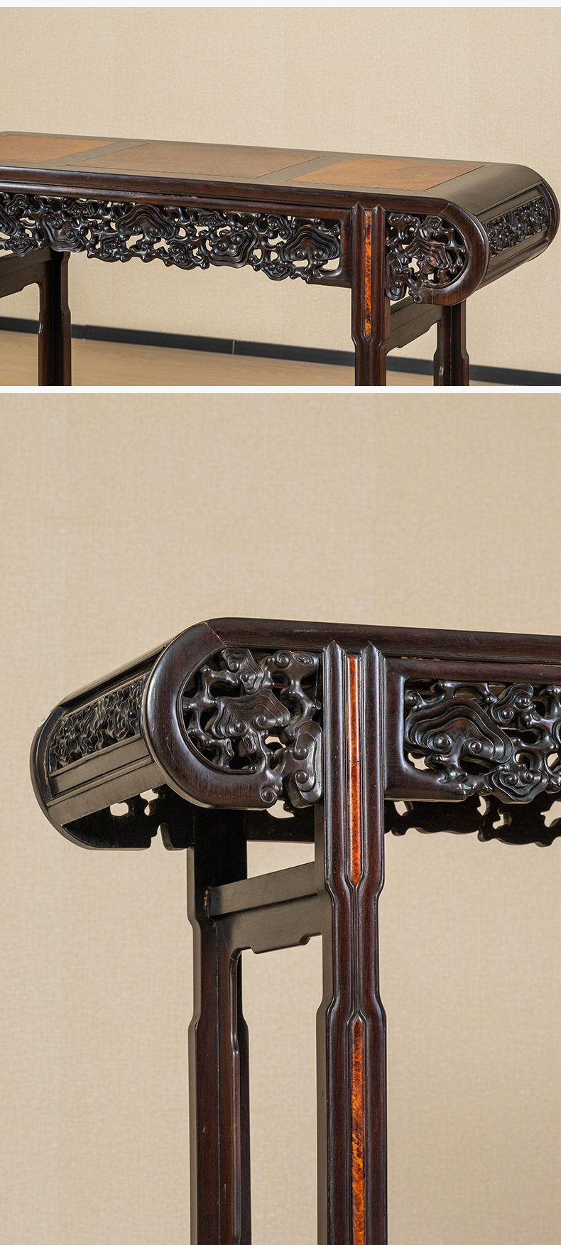 二十世纪 红木三镶瘿木透雕灵芝纹琴桌