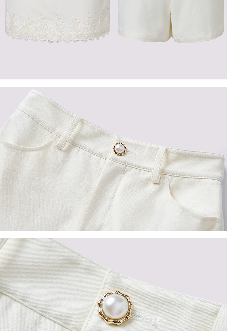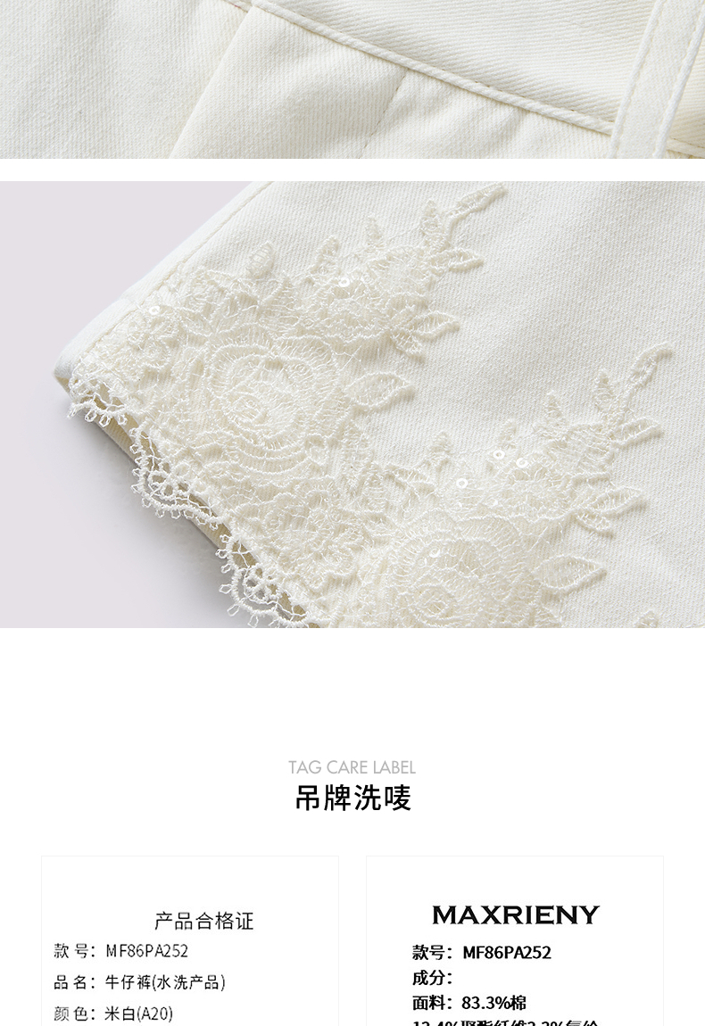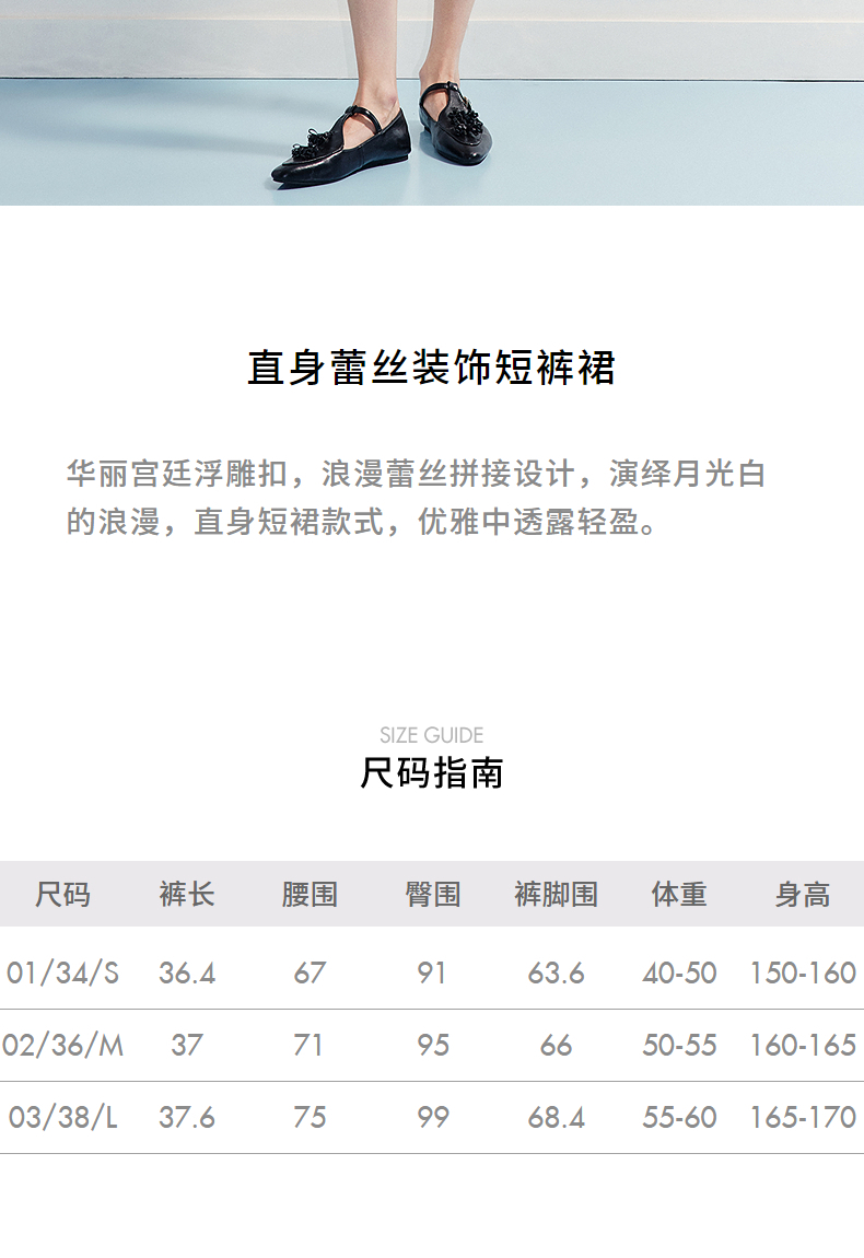 MAXRIENY华丽宫廷感裤裙25夏款米白色浮雕蕾丝直身短裤高腰裙裤(货号:MF86PA252)