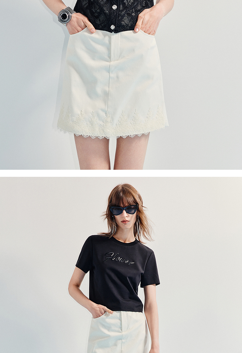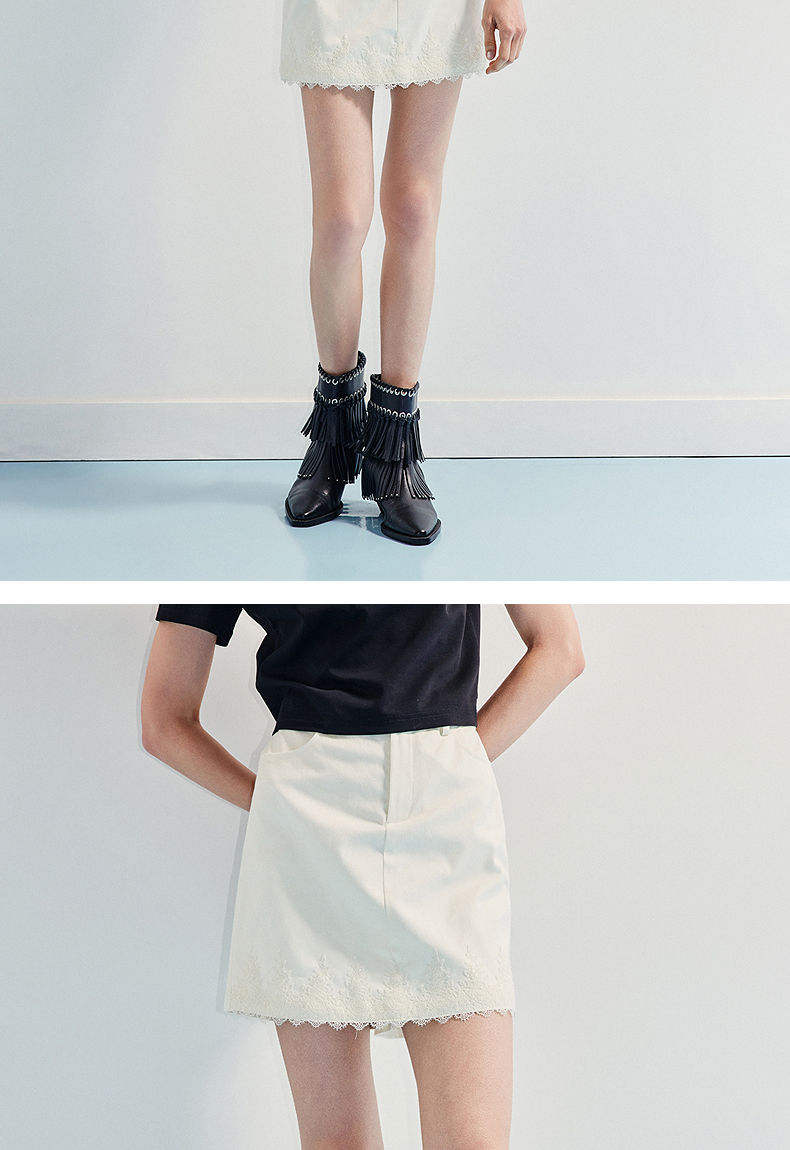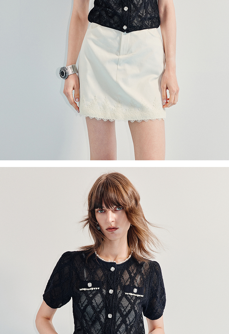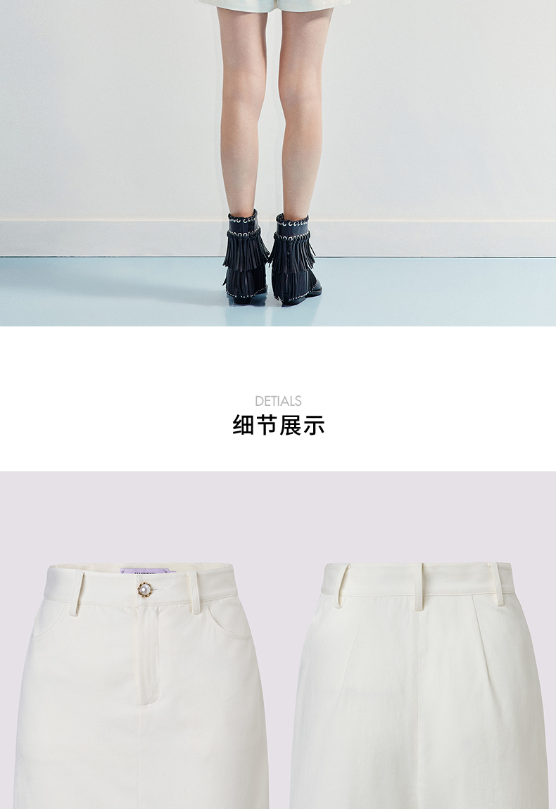 MAXRIENY华丽宫廷感裤裙25夏款米白色浮雕蕾丝直身短裤高腰裙裤(货号:MF86PA252)