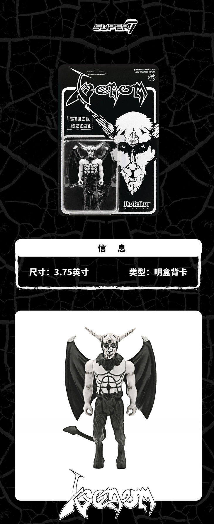 Super7 Venom ReAction Figure Black Metal 复古 挂卡 金属乐 潮流玩具 摆件