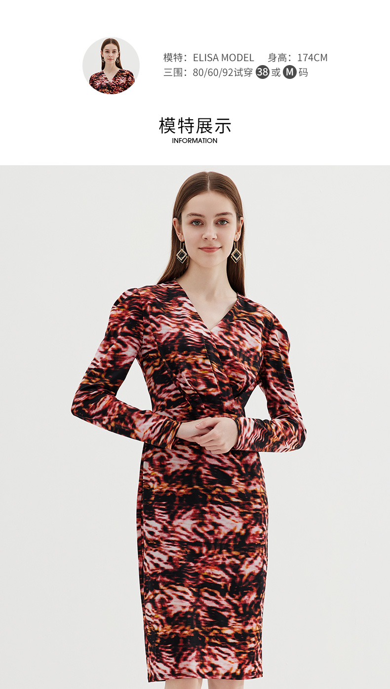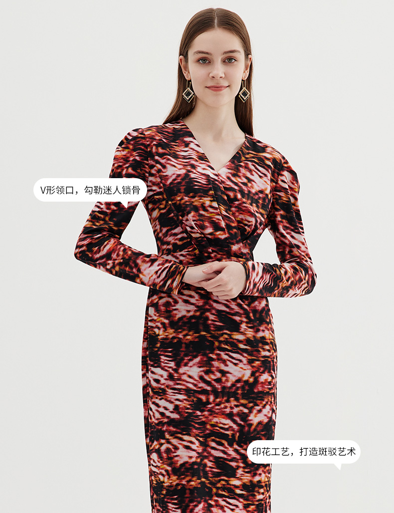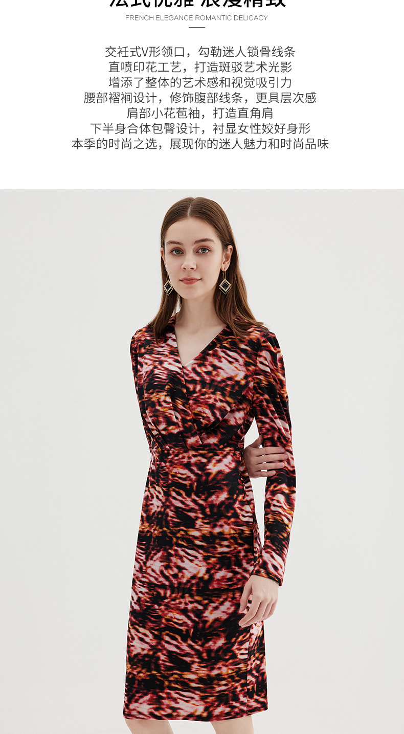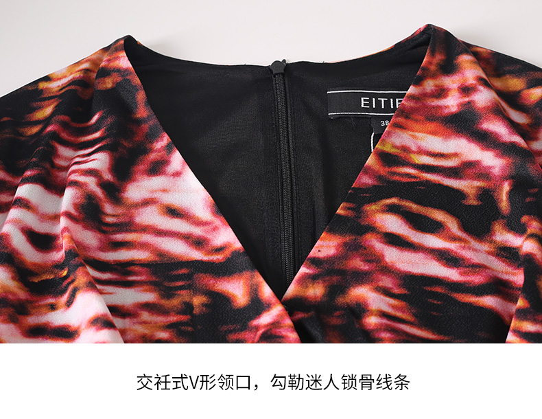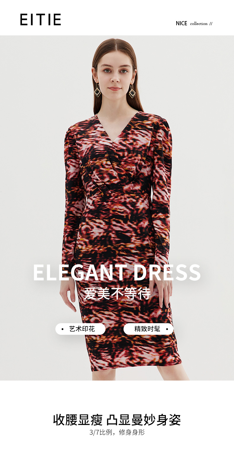EITIE爱特爱冬季新款印花时尚气质V领显瘦连衣裙7207909