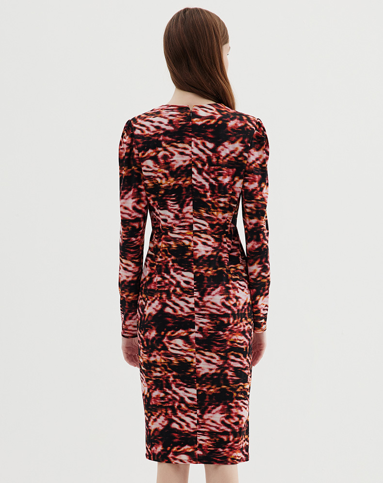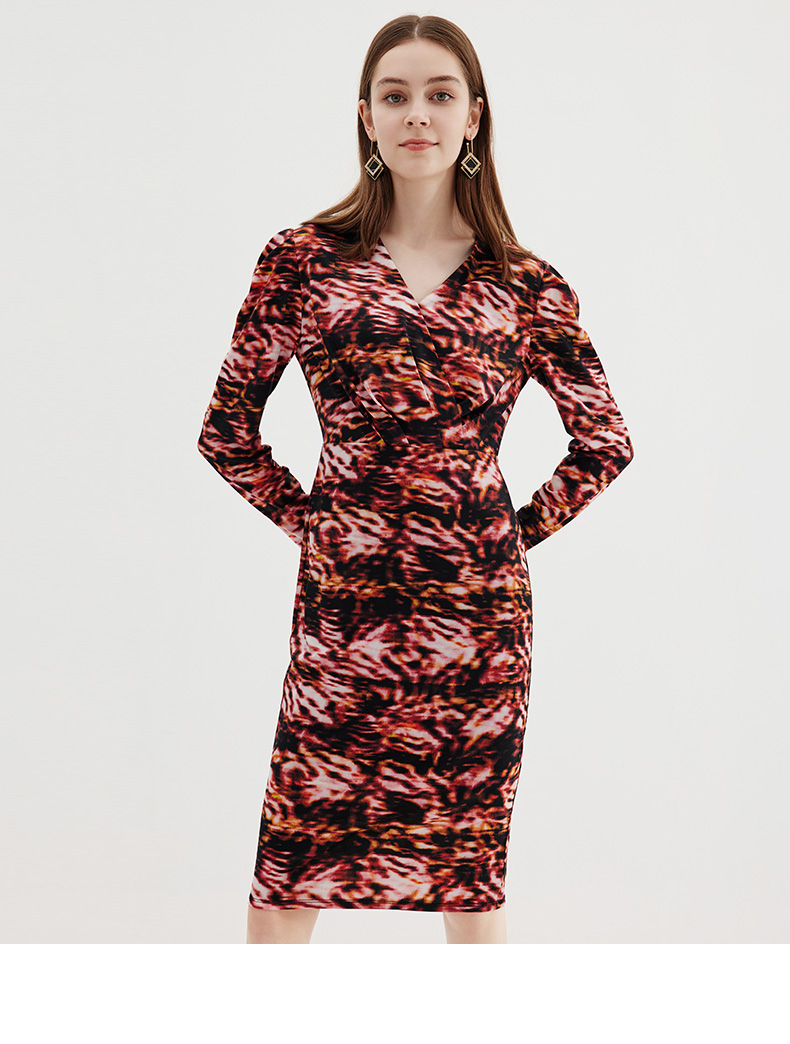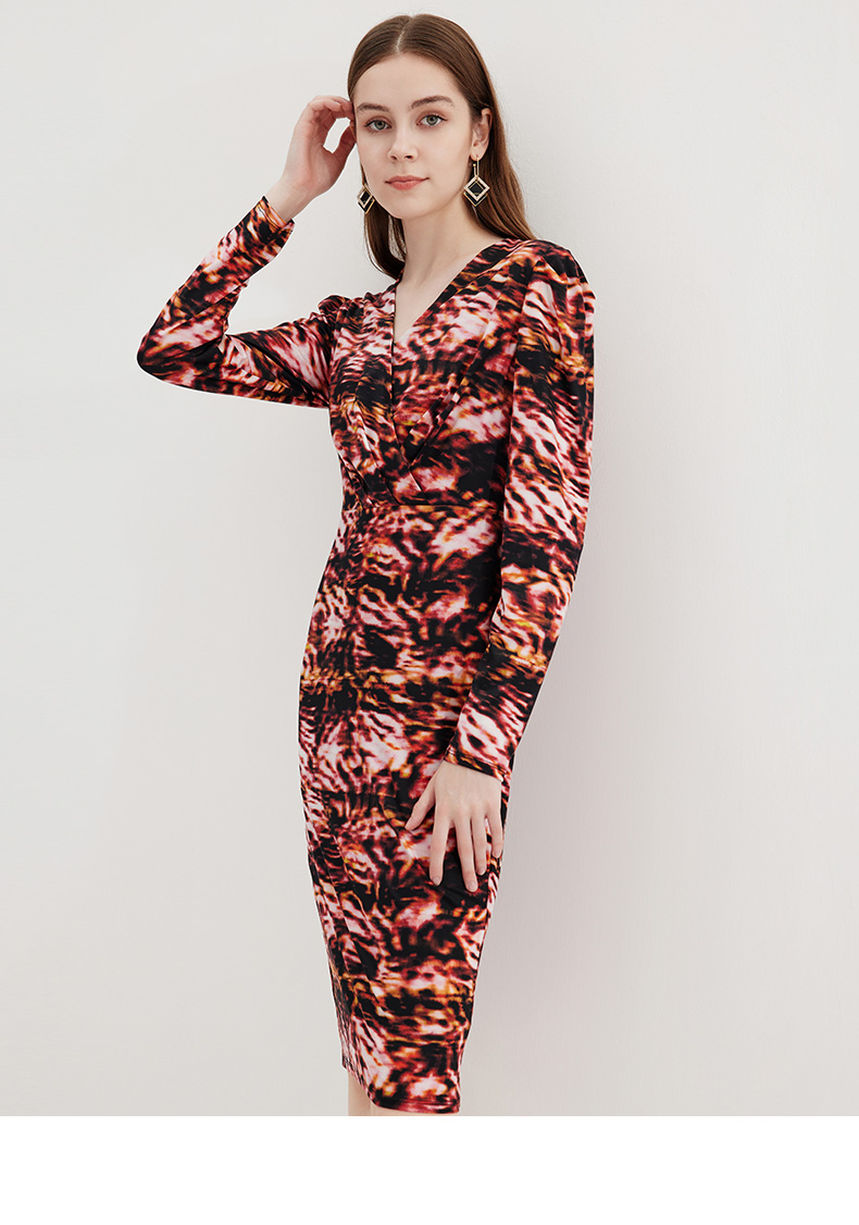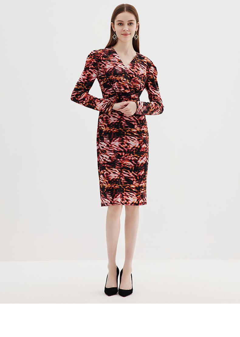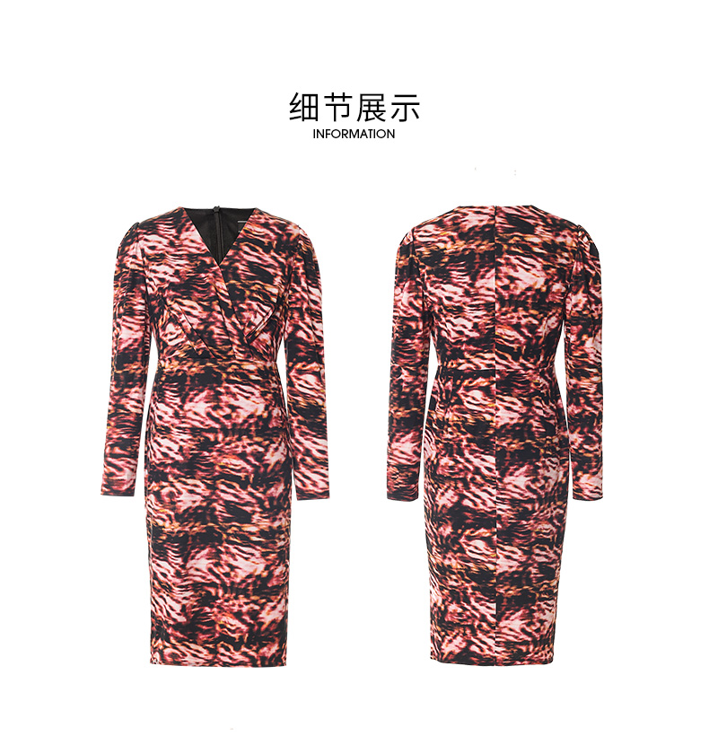 EITIE爱特爱冬季新款印花时尚气质V领显瘦连衣裙7207909