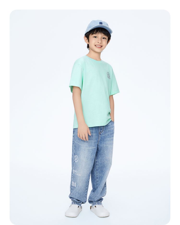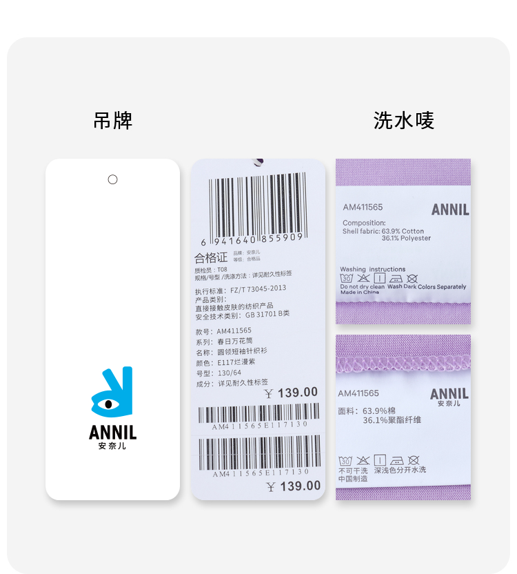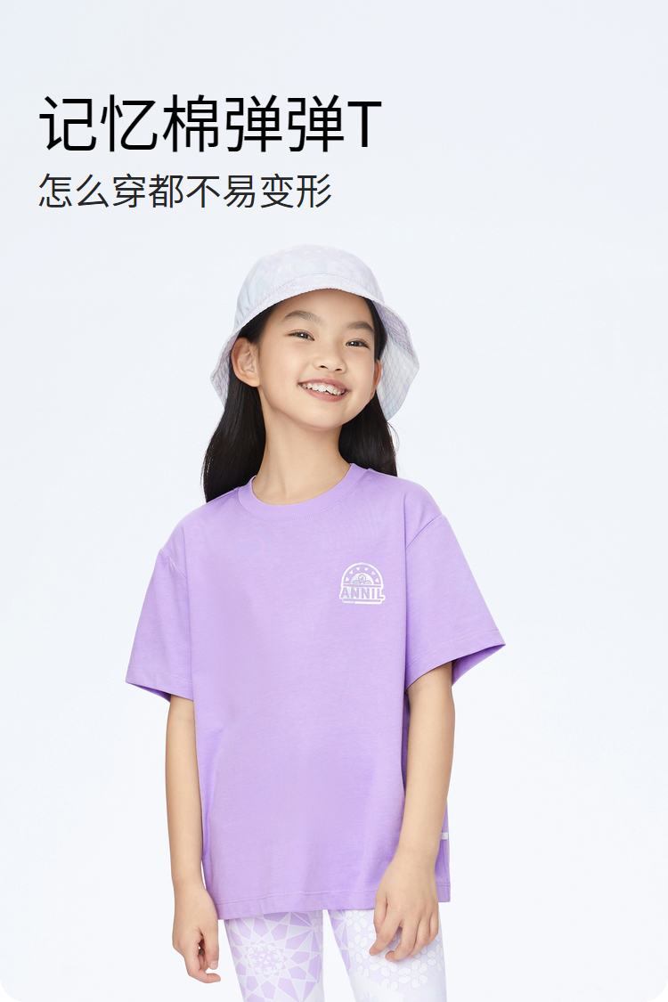 男女童弹力保型滑爽亲子装圆领短袖新款安奈儿童装实体店同款AM411565