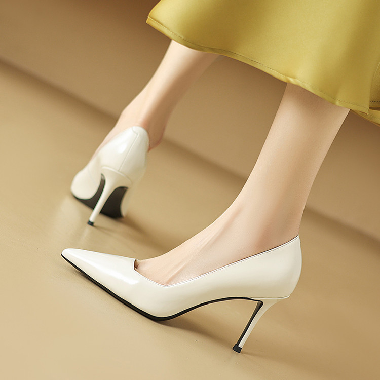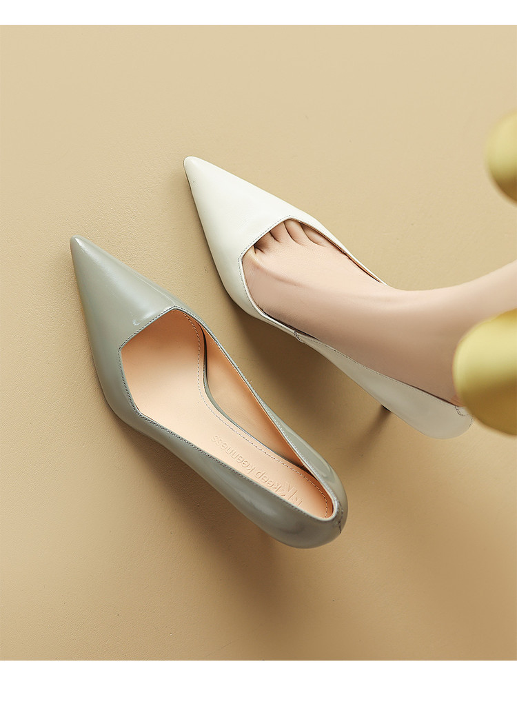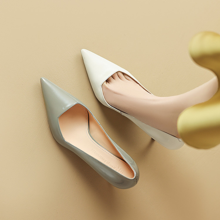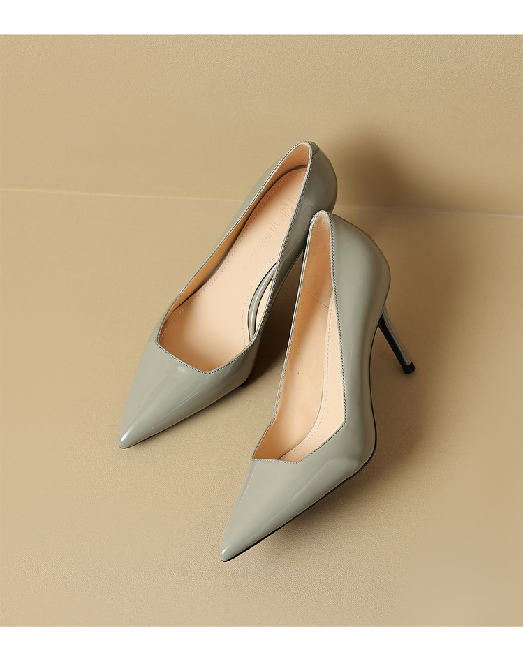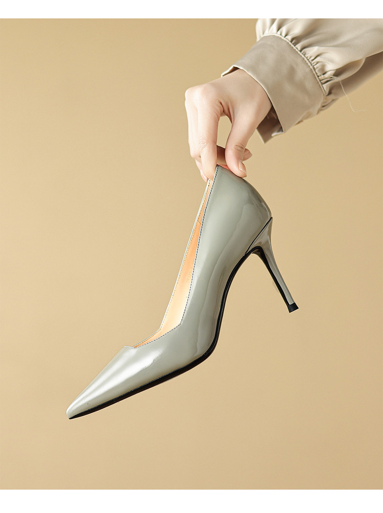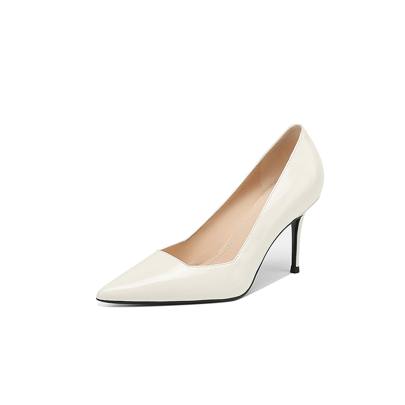 【货号】M1062-1【帮面材质】头层牛漆皮/头层牛油皮【鞋垫】羊皮垫【内里材质】羊皮里【鞋底材质】橡胶【跟高】8CM【颜色】象牙白牛油皮 灰绿色漆皮【尺码】34-39