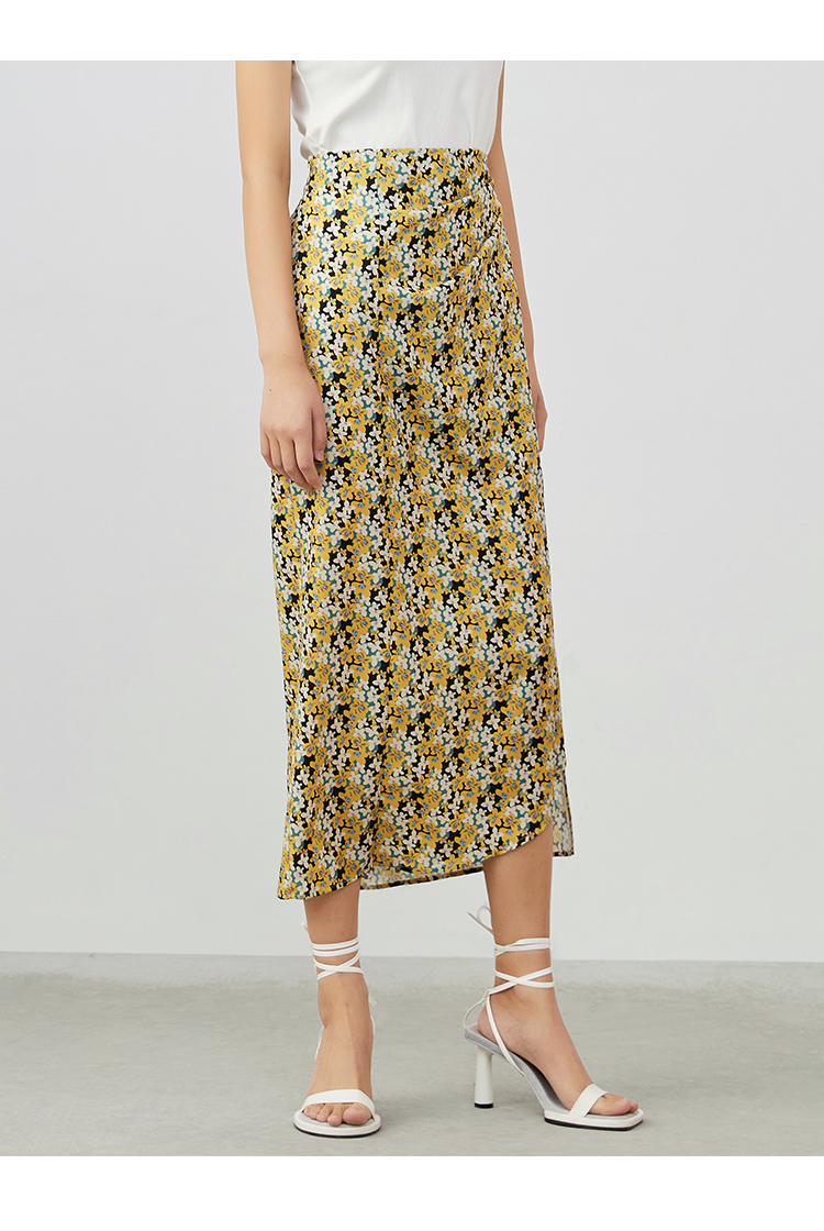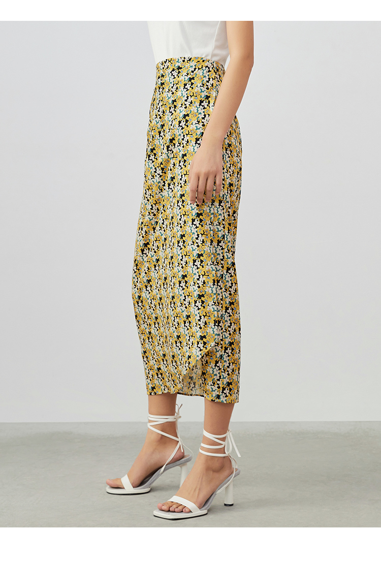 VIMAGE/纬漫纪夏季新款时尚印花包臀开叉中长款半身裙女裙V1706315
