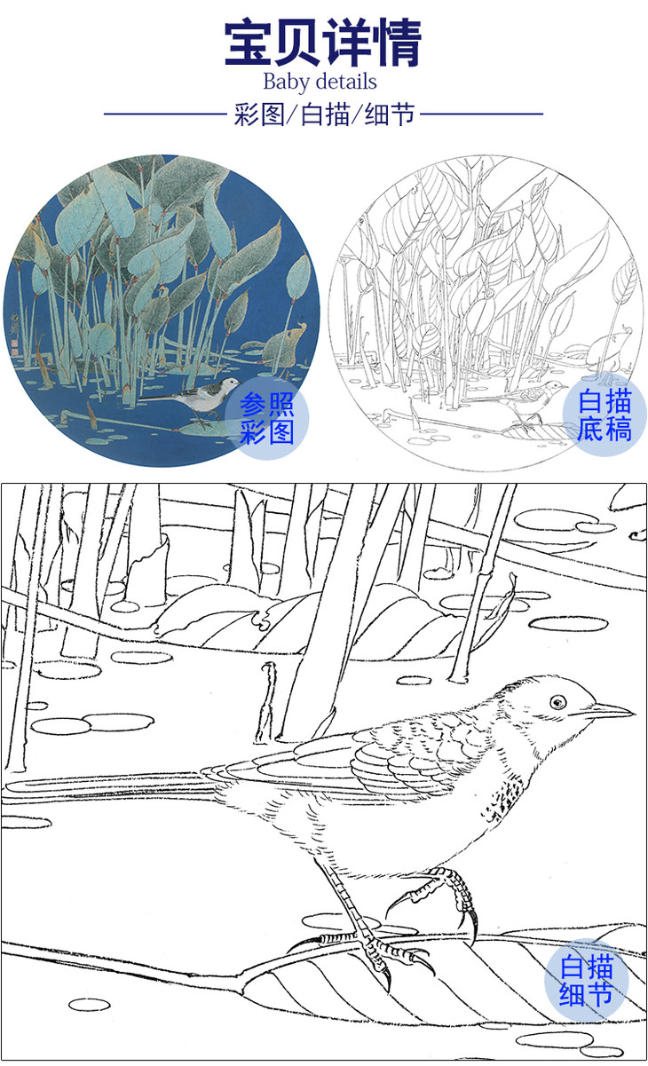 工笔画白描底稿 盘虎杰 圆形花鸟小品 HJ13