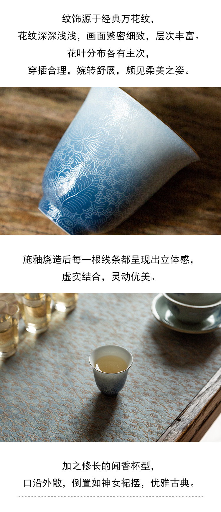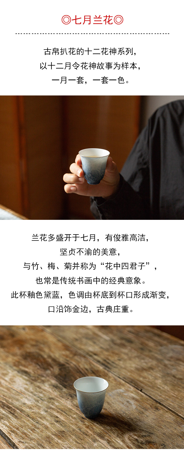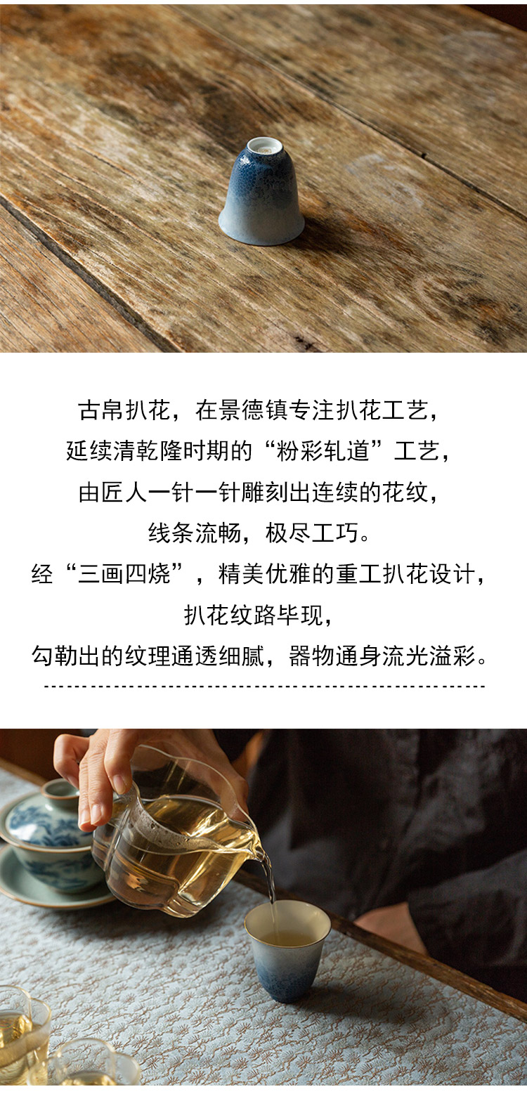 茶香记 十二花神系列二才花神杯·七月兰花(黛蓝) 古帛扒花 闻香杯 万花纹