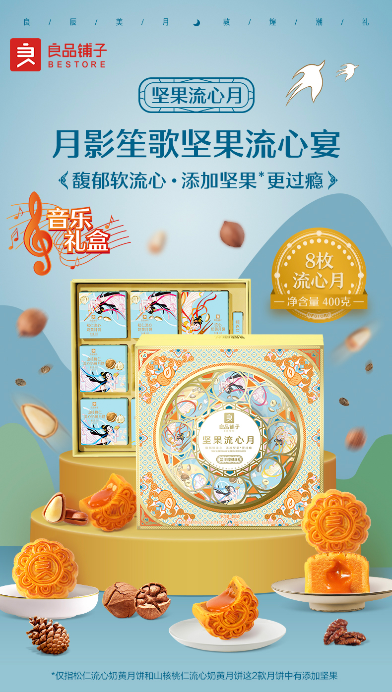 【良品铺子月饼礼盒】坚果流心月400g