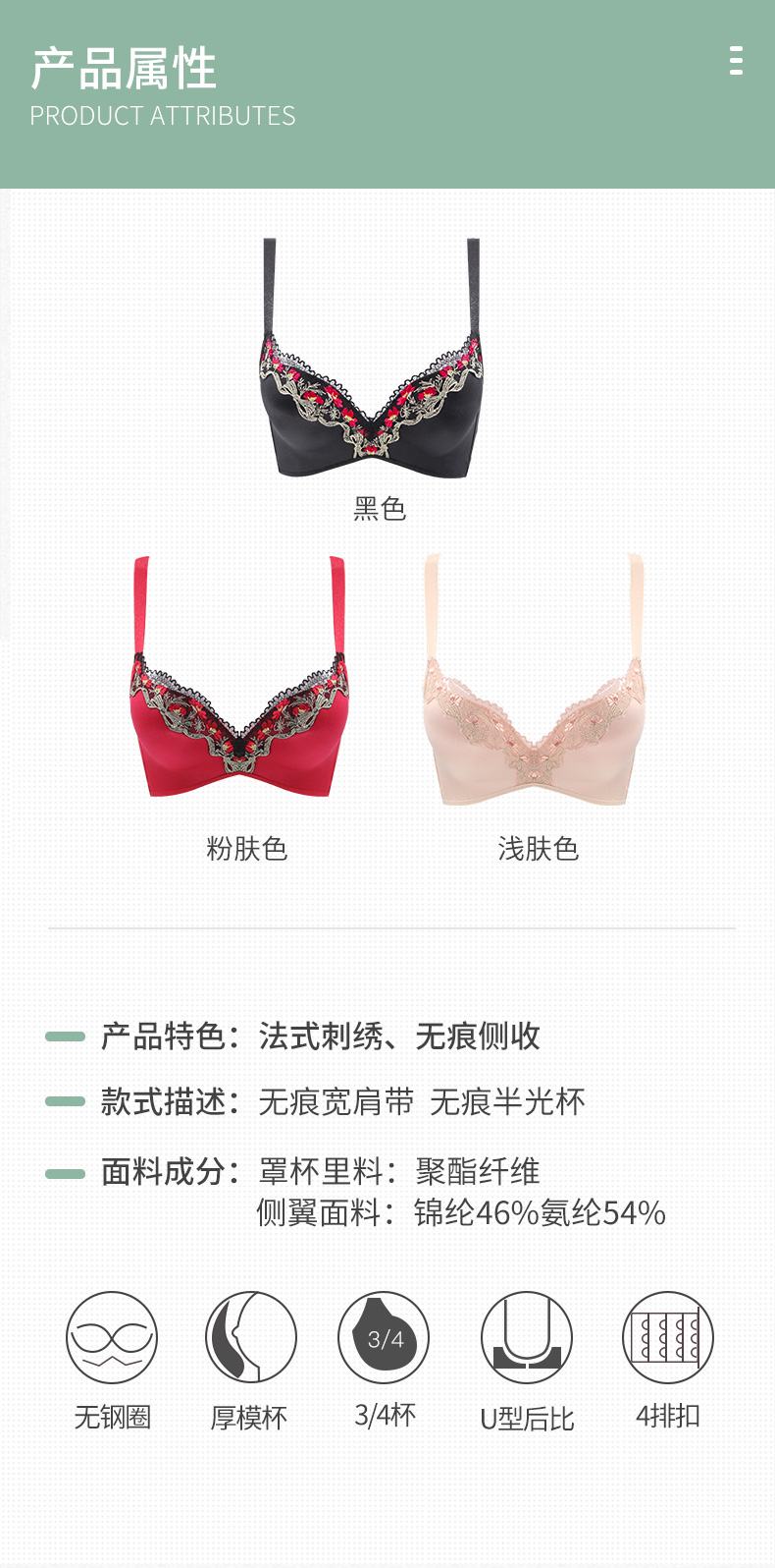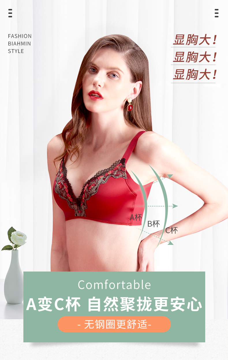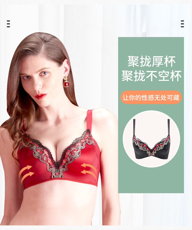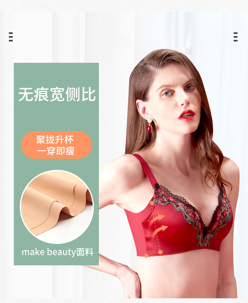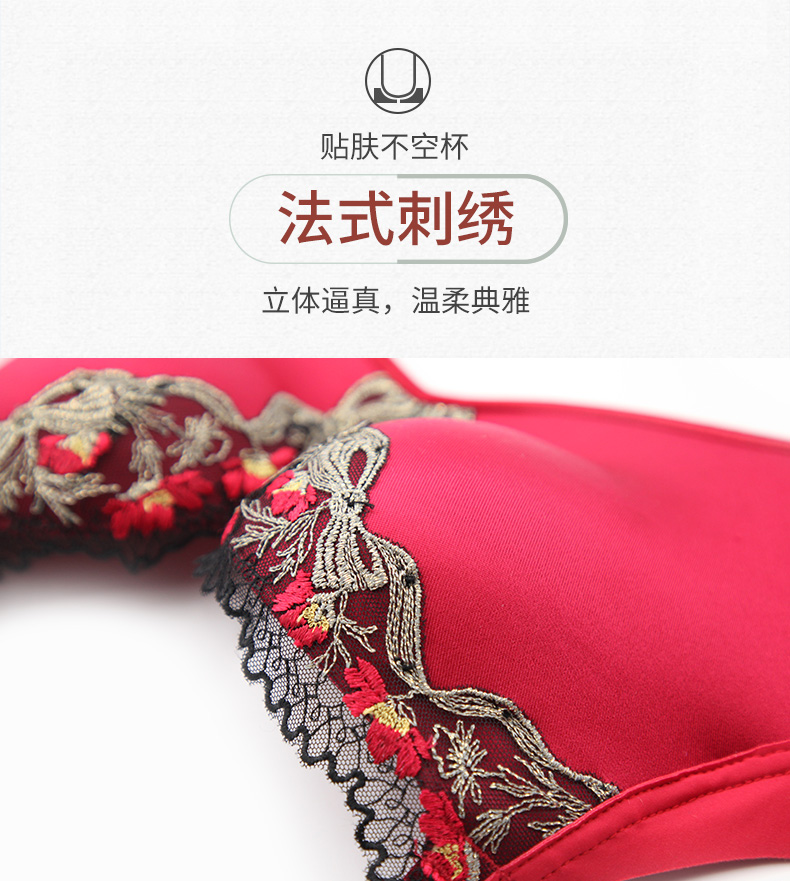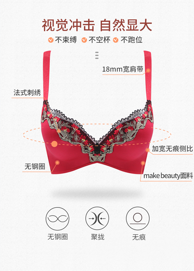 贝佳人无钢圈压迫舒适文胸透气小胸聚拢无痕光面内衣法式刺绣BW95814