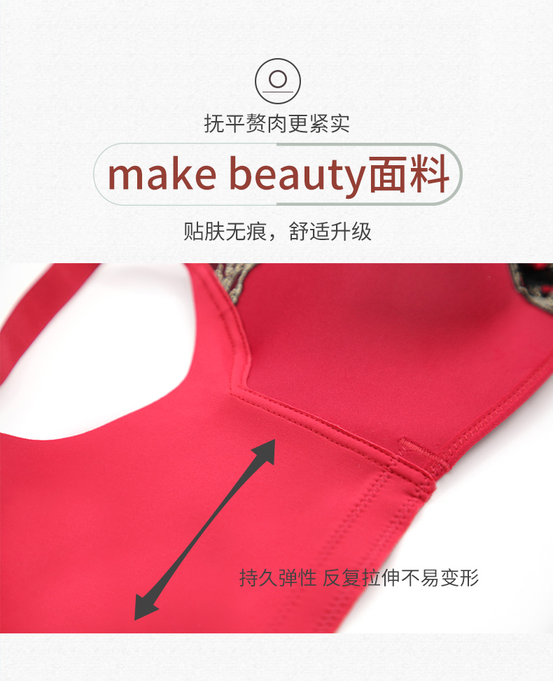 贝佳人新品花纹蕾丝调整型文胸无钢圈零束缚美背内衣透气聚拢BW952022