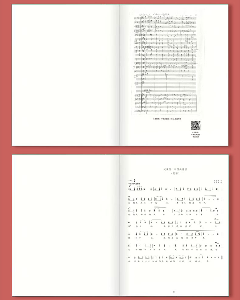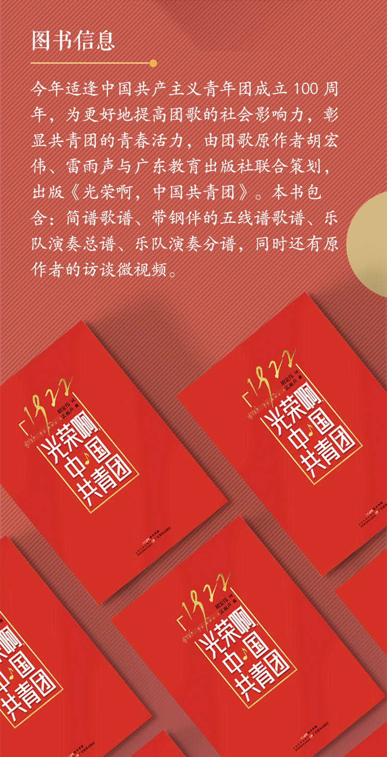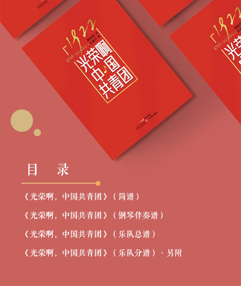 《光荣啊,中国共青团》中国共青团团歌钢琴伴奏的五线谱歌谱、乐队演奏总谱、乐队演奏分谱9787554848821广东教育出版社