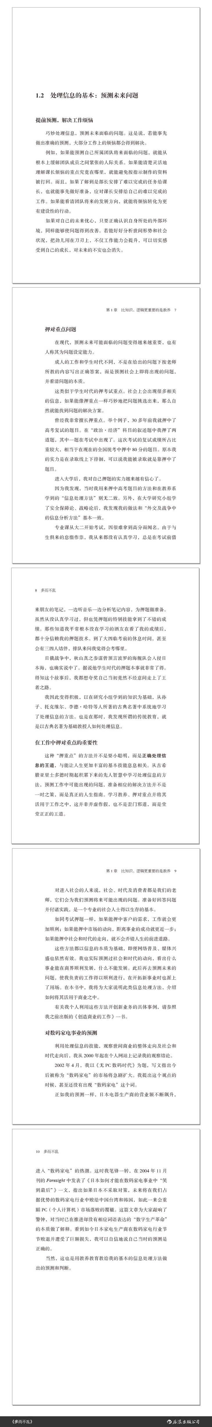 2.本书全面介绍了3个预测问题、抓住重点的基本技能;5个信息处理的重要环节;24个信息处理方法的要点,内容系统详尽,实操性强,可以有效提升我们的信息处理能力。