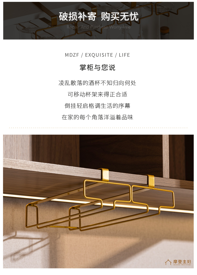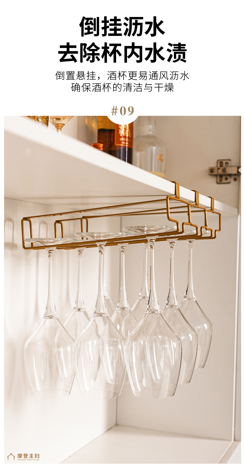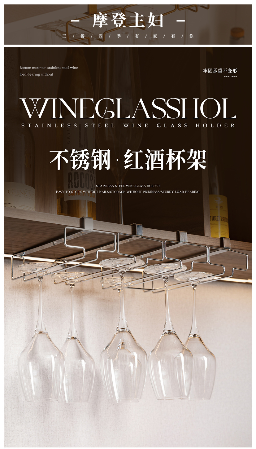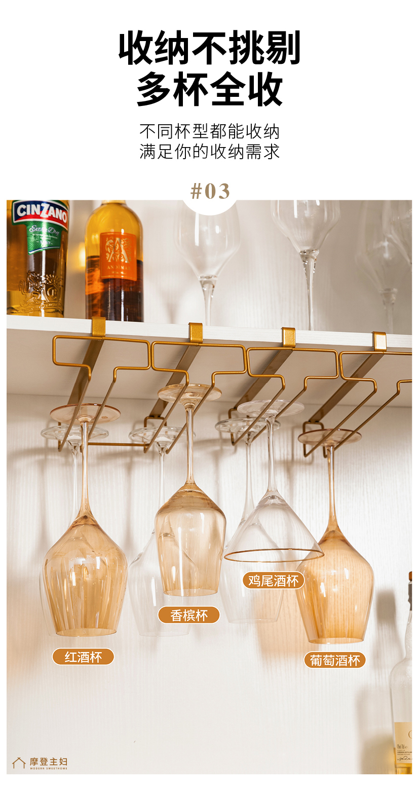 摩登主妇免打孔倒挂红酒杯架置物架2025新款高级感轻奢高脚杯架子