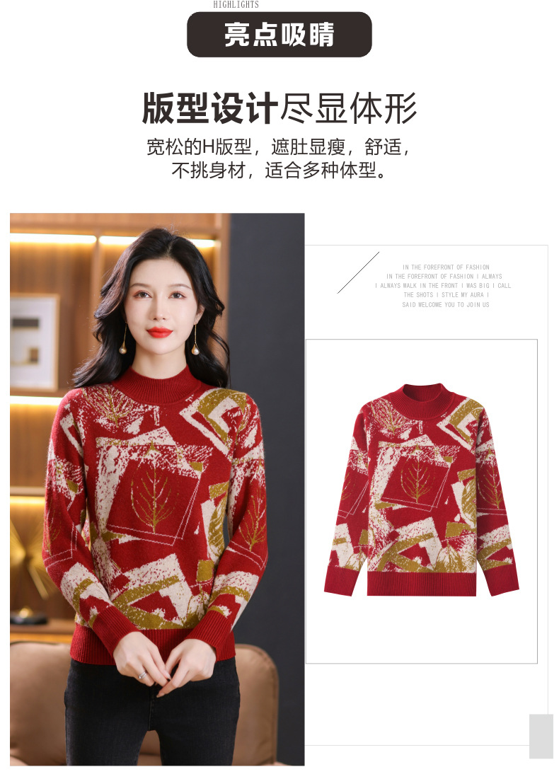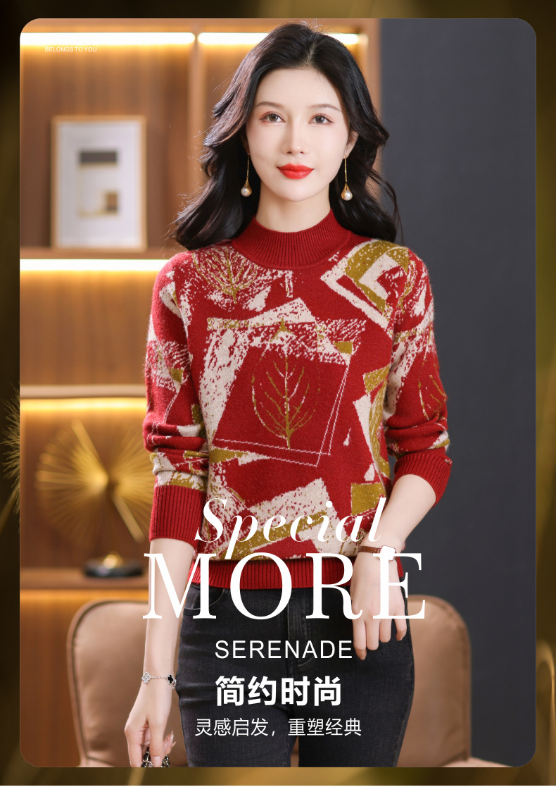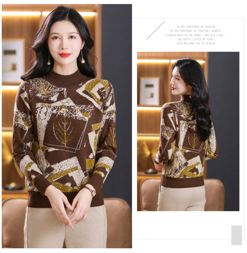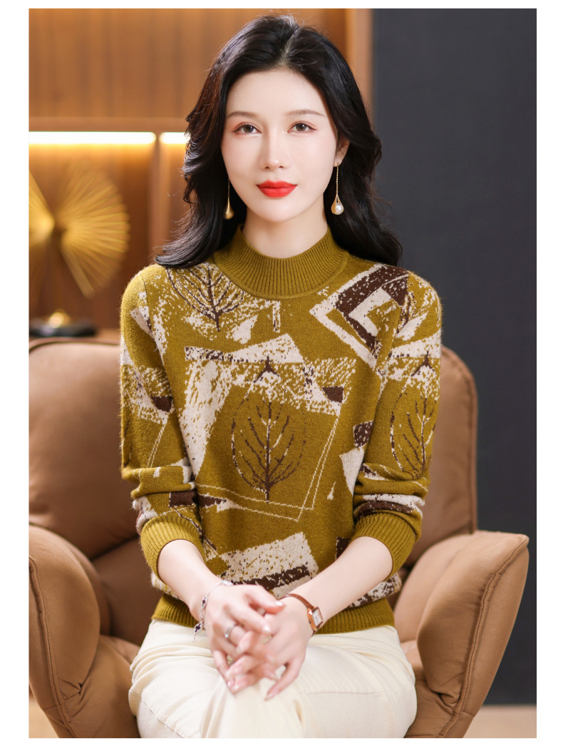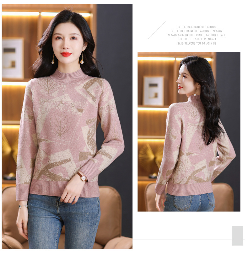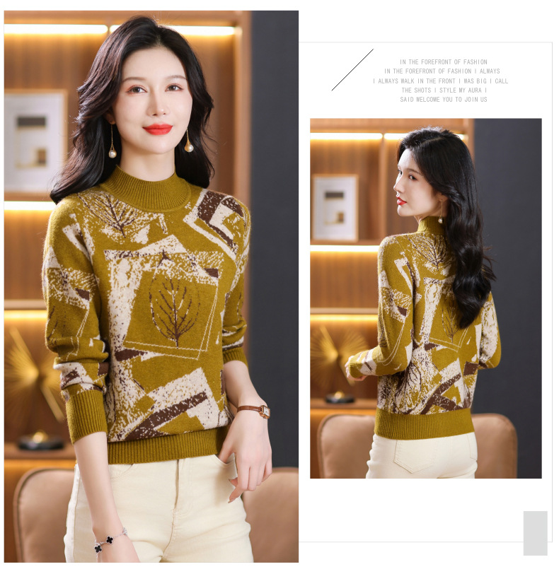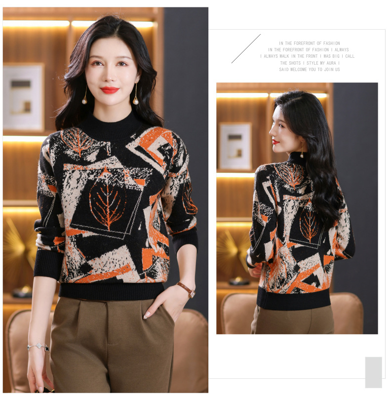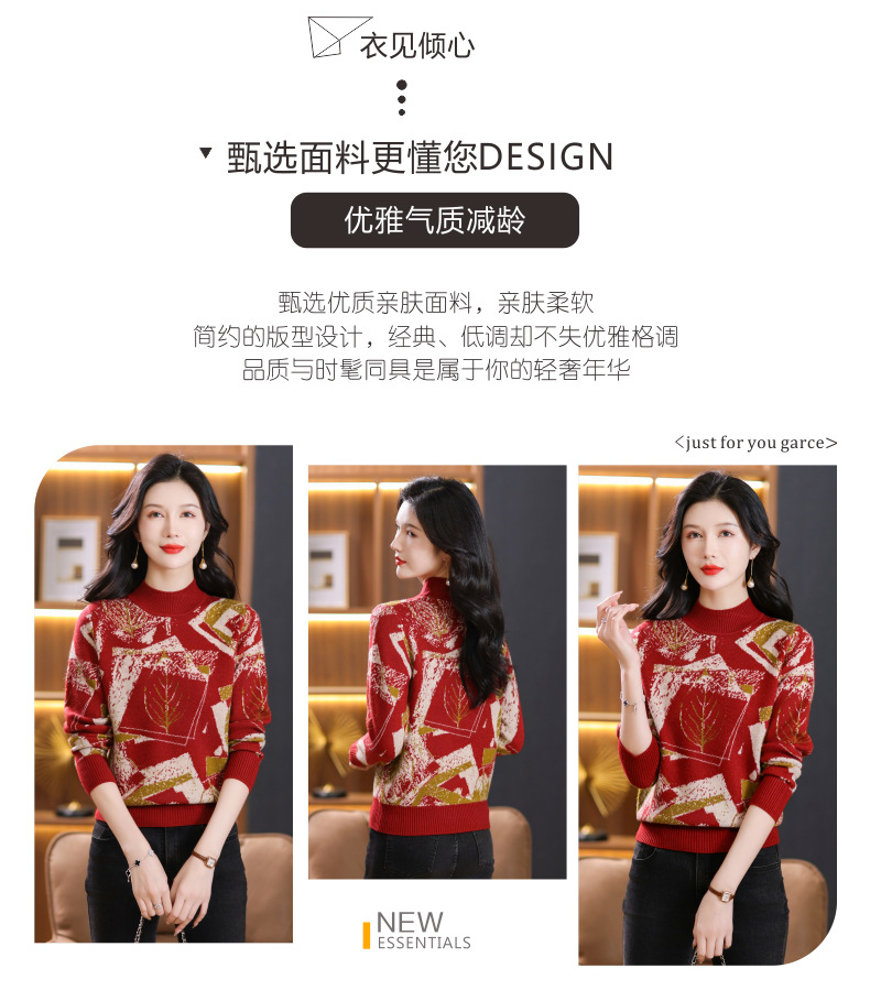 半高领印花毛衣,洋气内搭打底衫CC-101-F892
