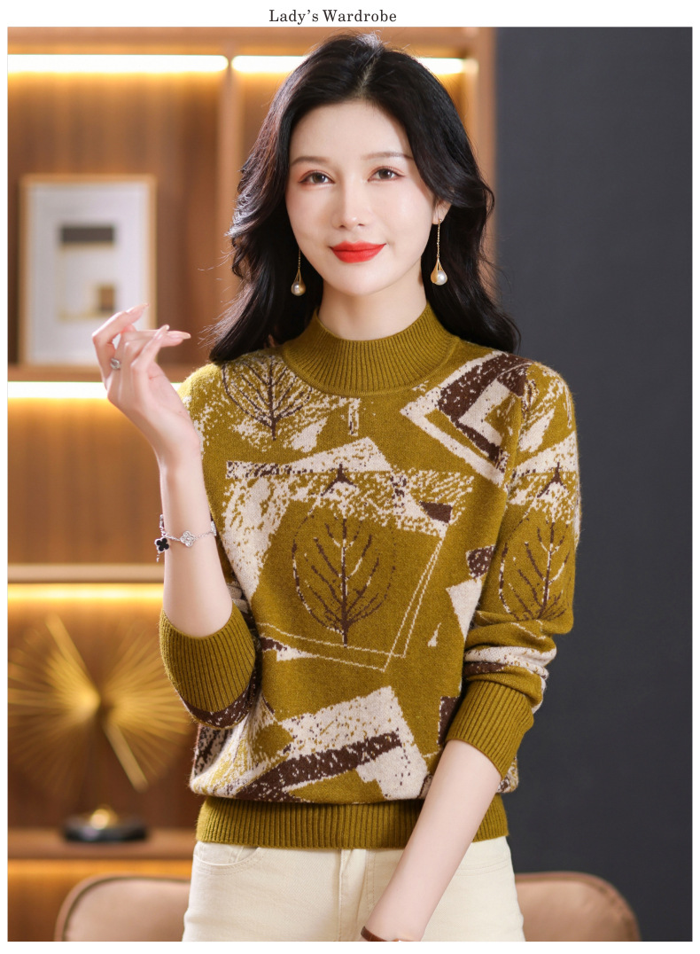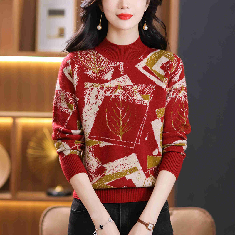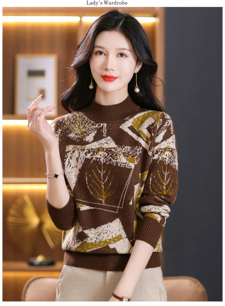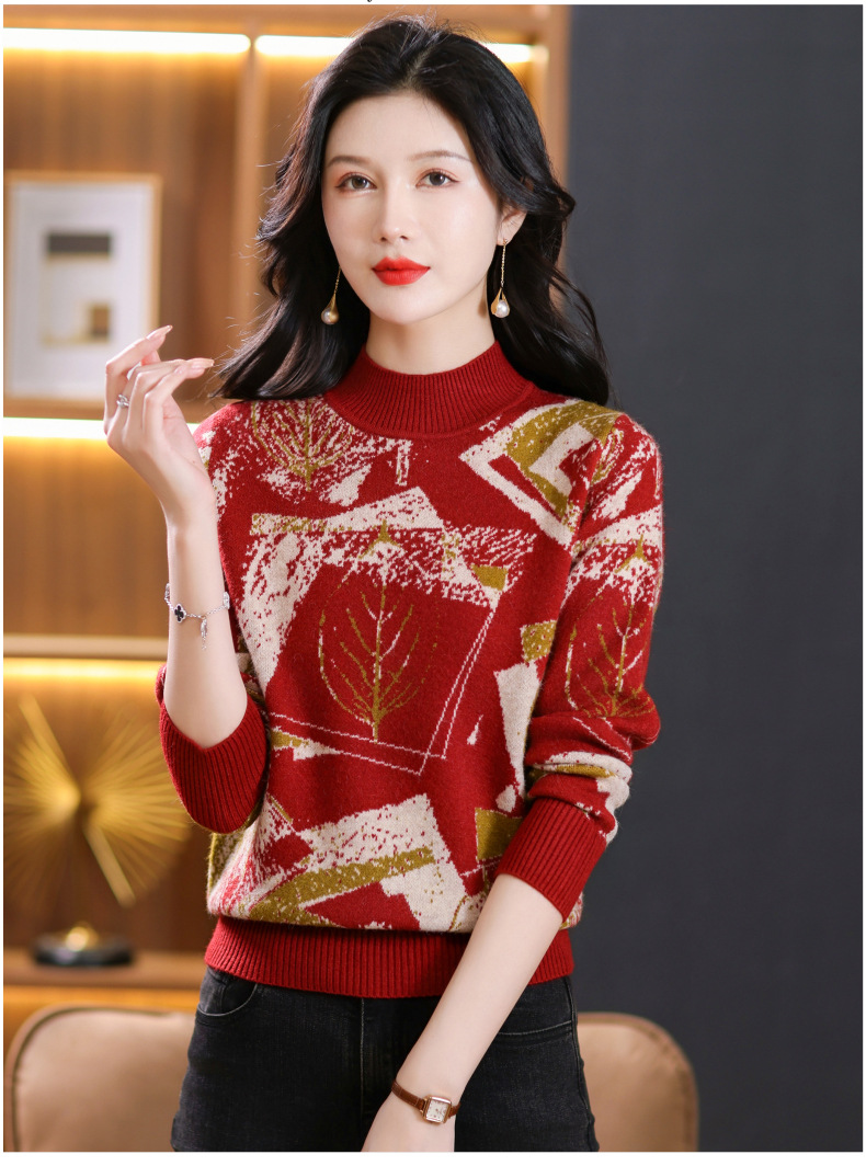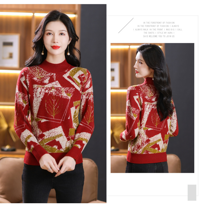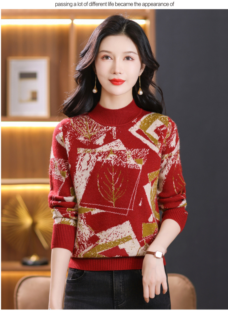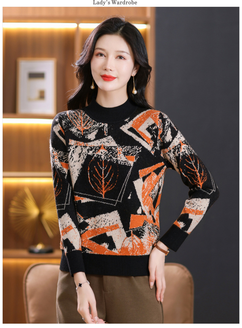 半高领印花毛衣,洋气内搭打底衫CC-101-F892