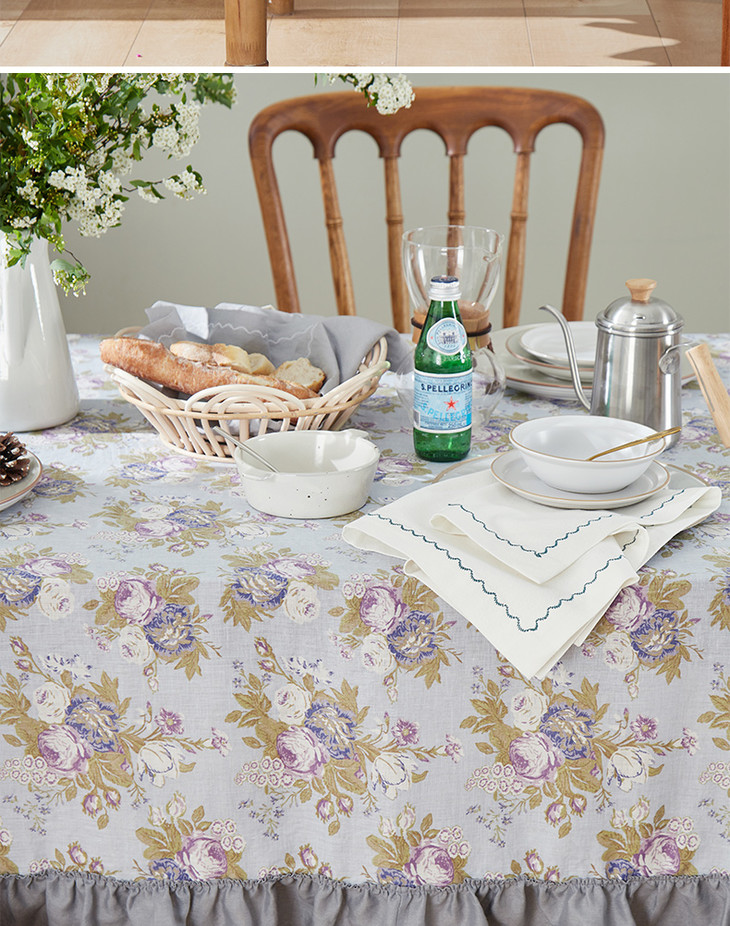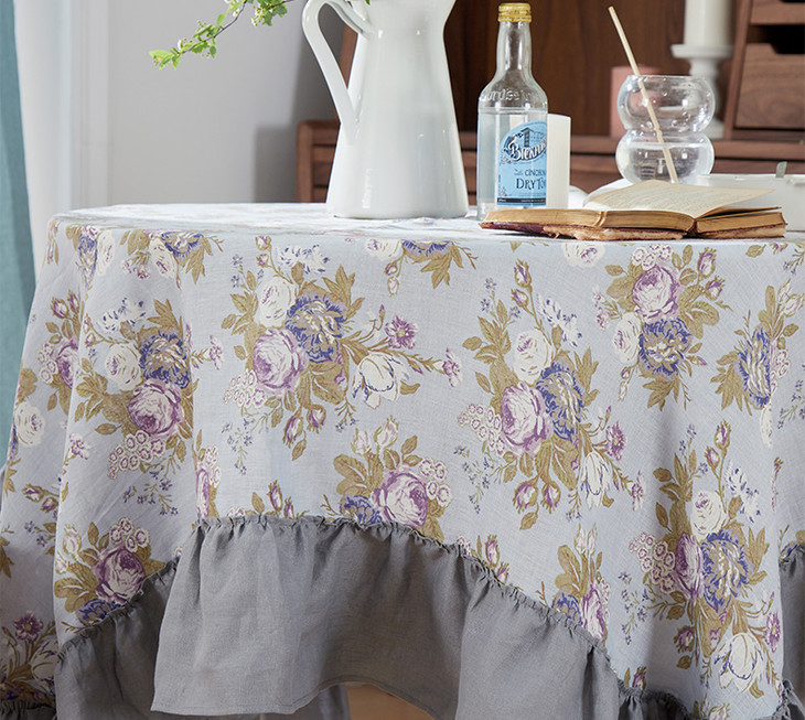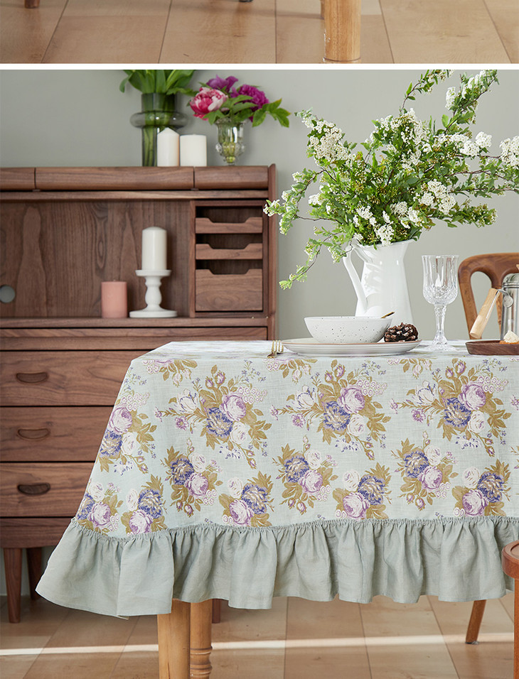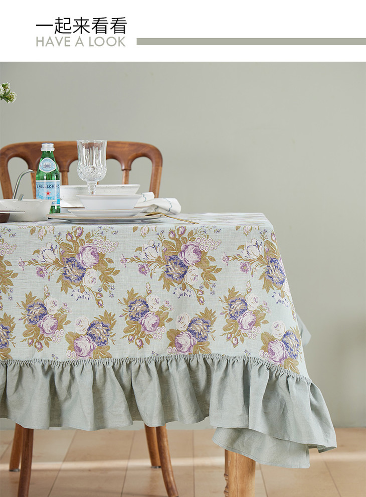 方桌布欧式田园餐桌布法式玫瑰亚麻桌布