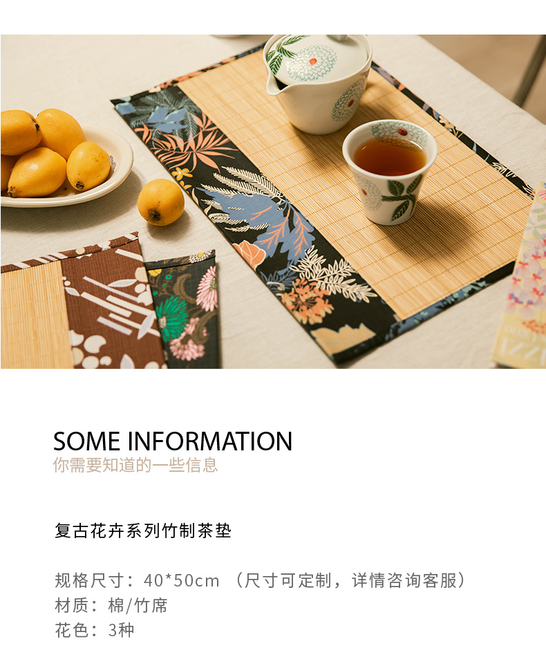 复古花卉系列竹制茶垫新中式禅意茶垫