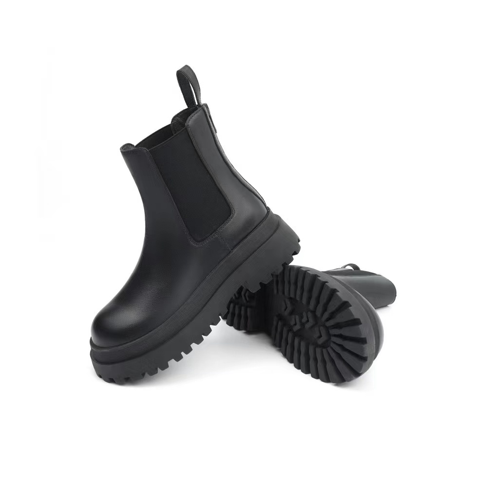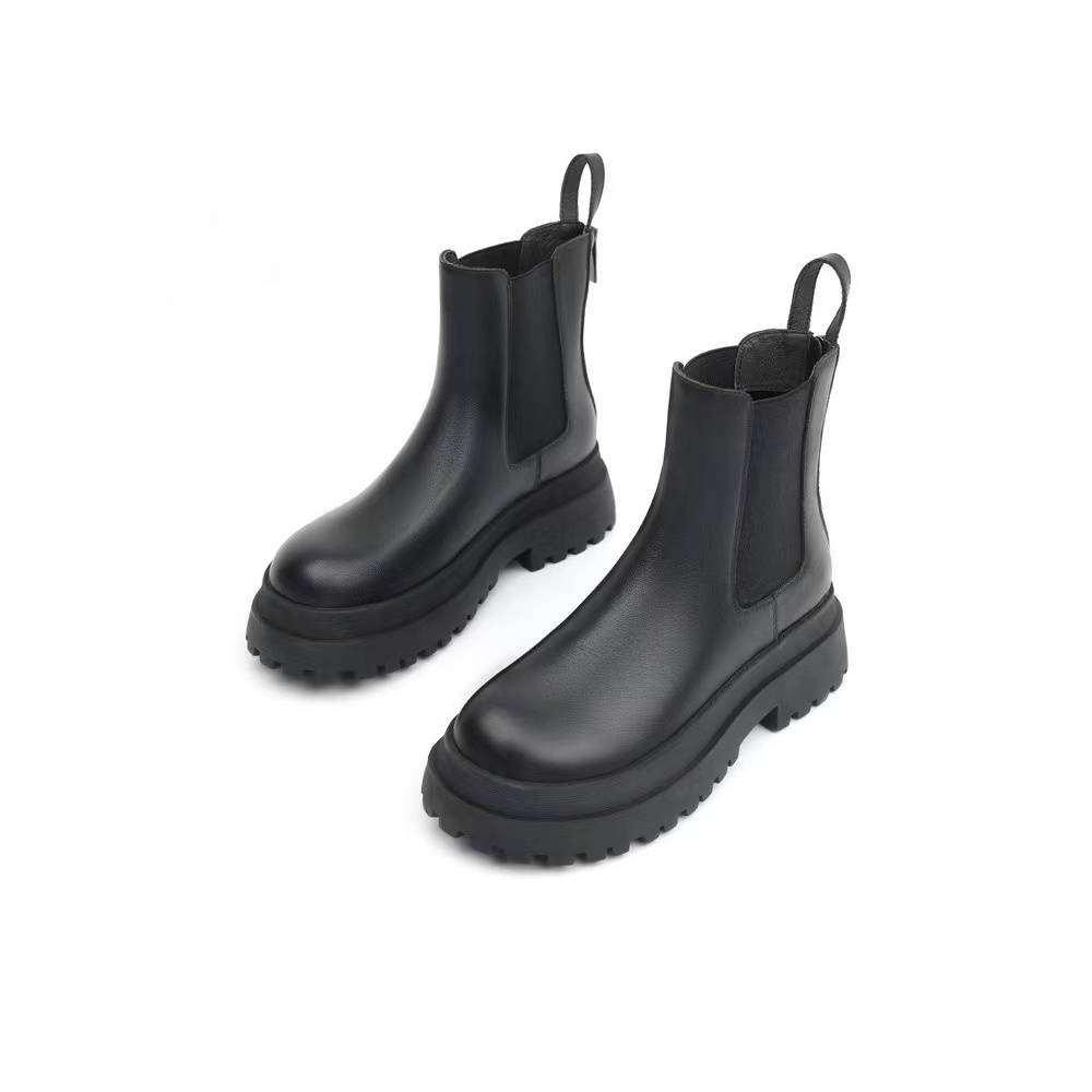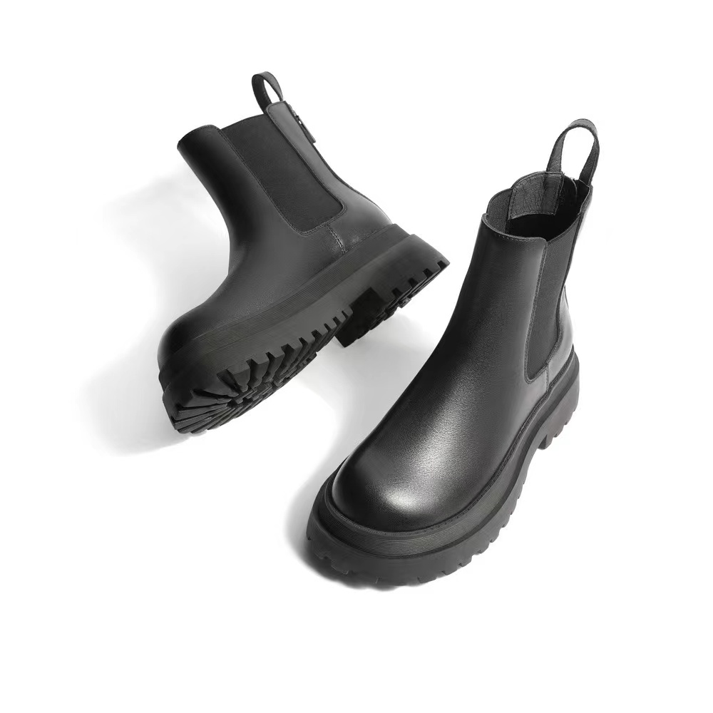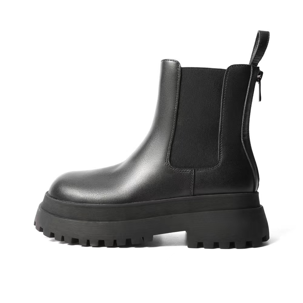 英伦风切尔西烟筒靴;双重便捷设计;后置拉链 轻松穿脱;侧边弹力带 包容多脚型;黄金筒高 修饰纤细长腿