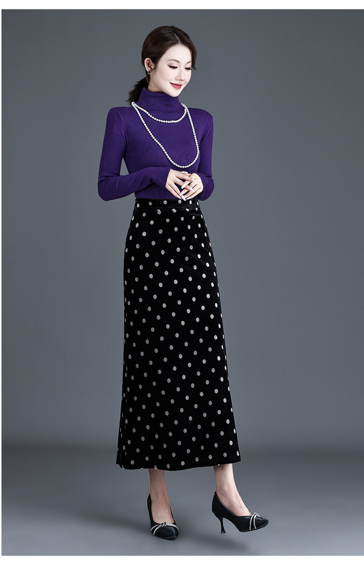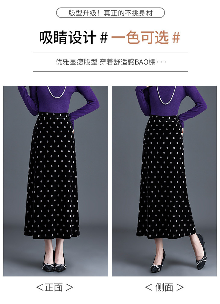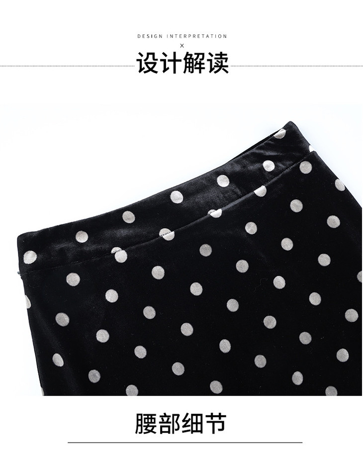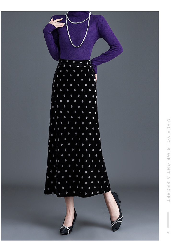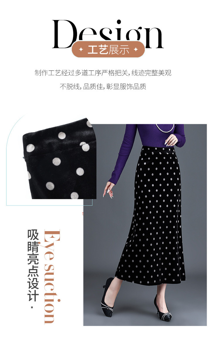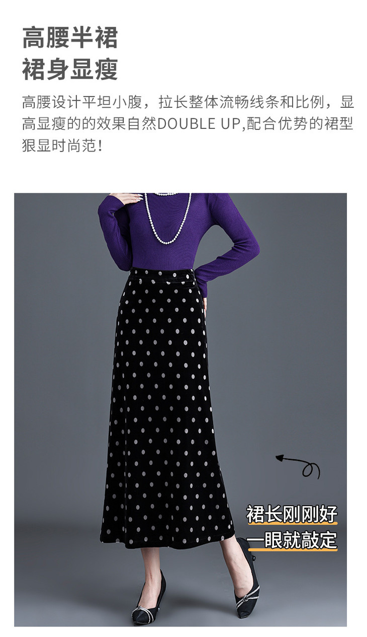 黑色波点垂感修身直筒裙,长款休闲A字裙显瘦高腰半身裙MYX-YS-9966-L