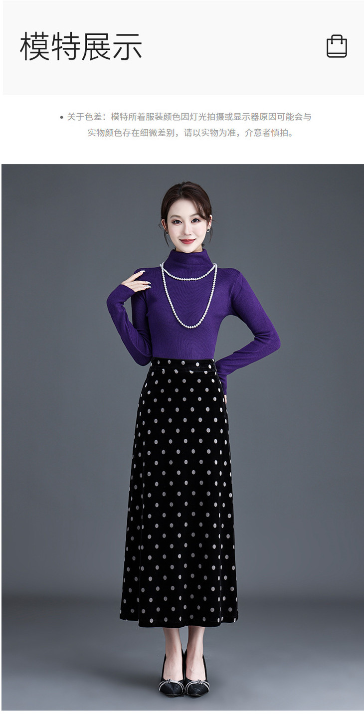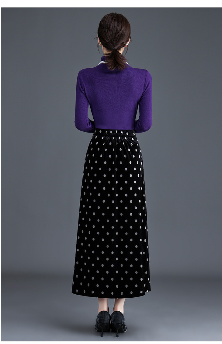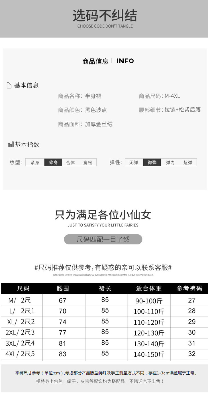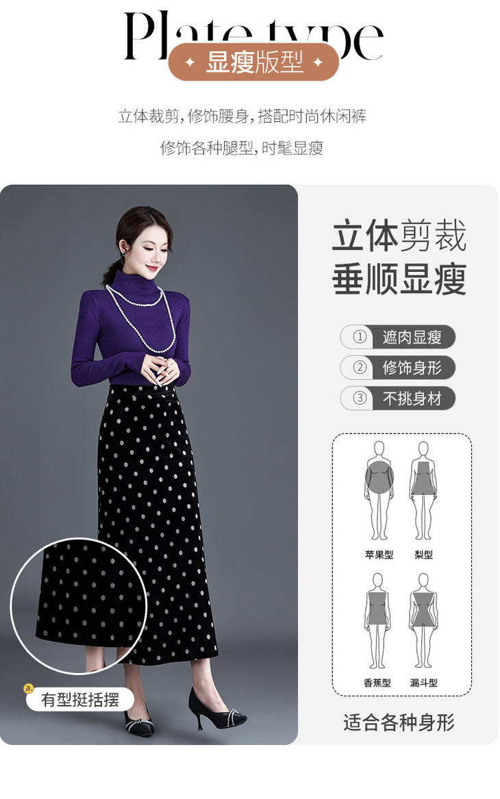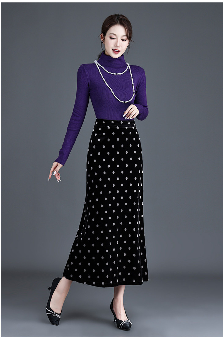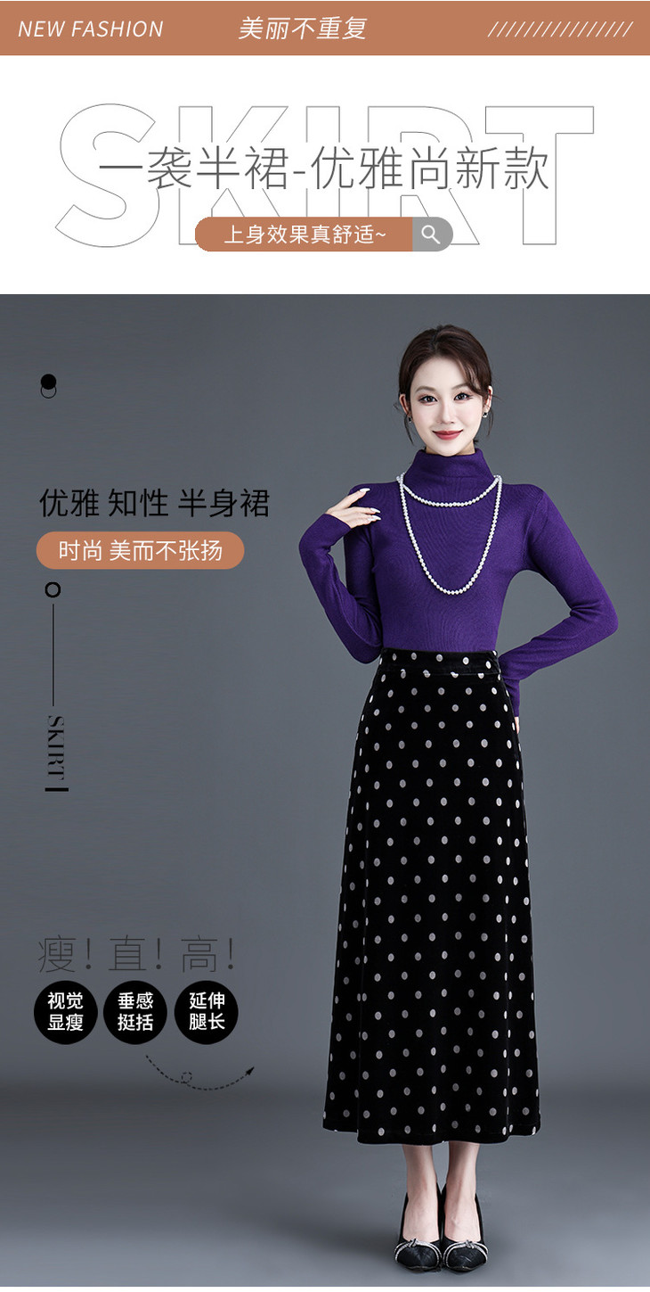 黑色波点垂感修身直筒裙,长款休闲A字裙显瘦高腰半身裙MYX-YS-9966-L