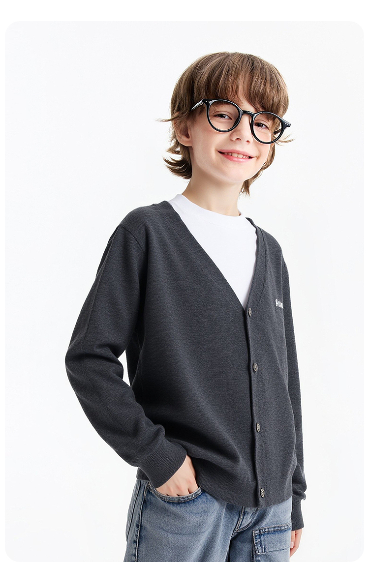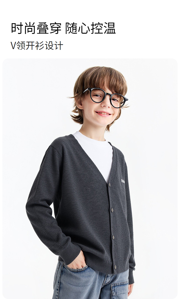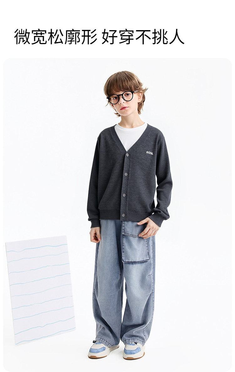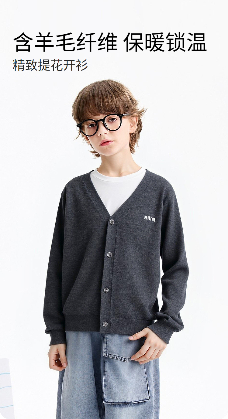 【暖“羊羊”精致毛衣开衫】男女童含羊毛细腻暖糯针织开衫春季新款安奈儿童装EM614680