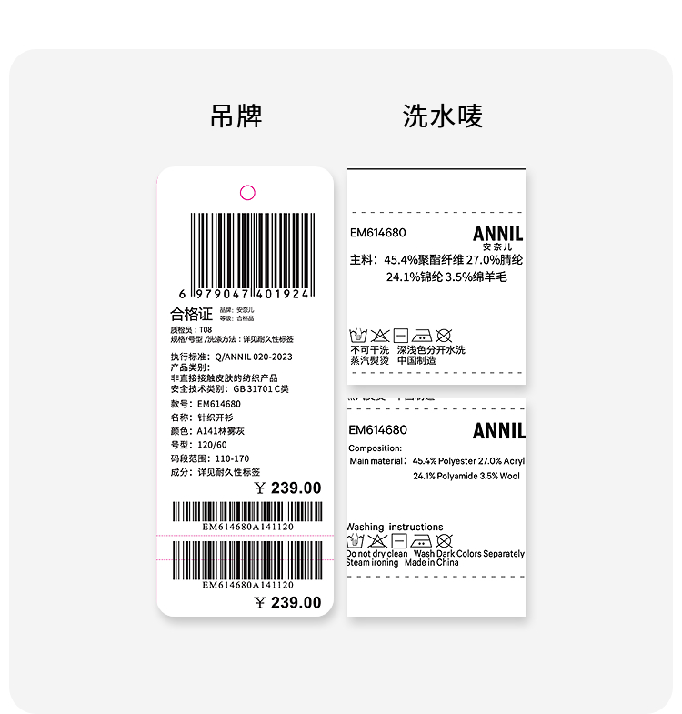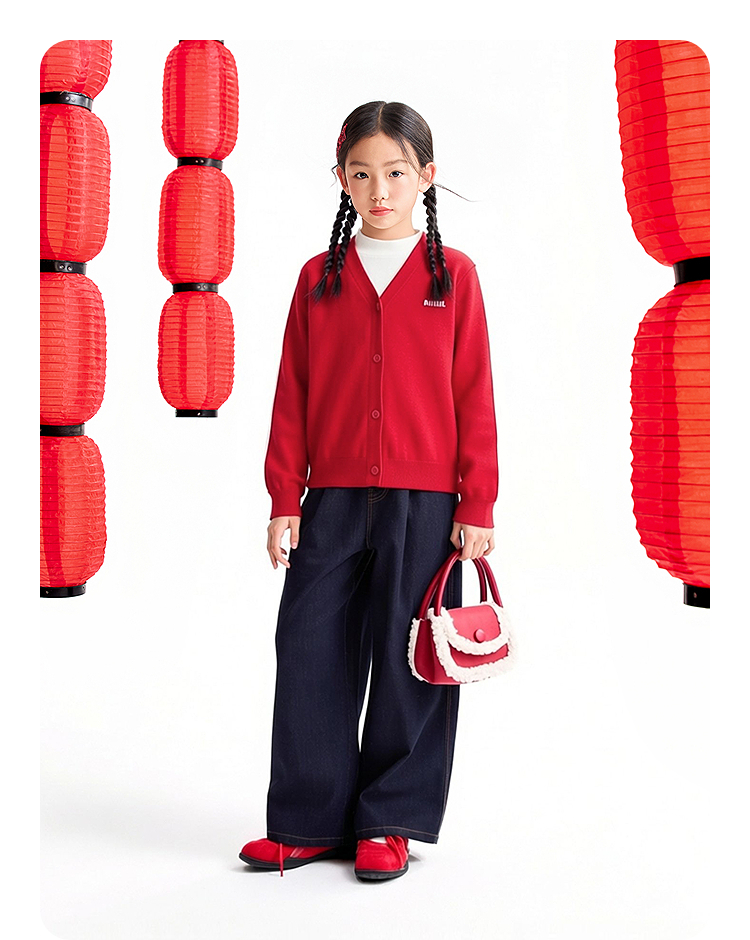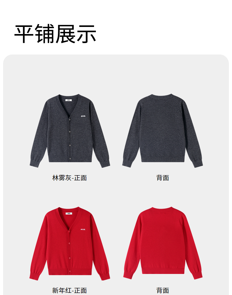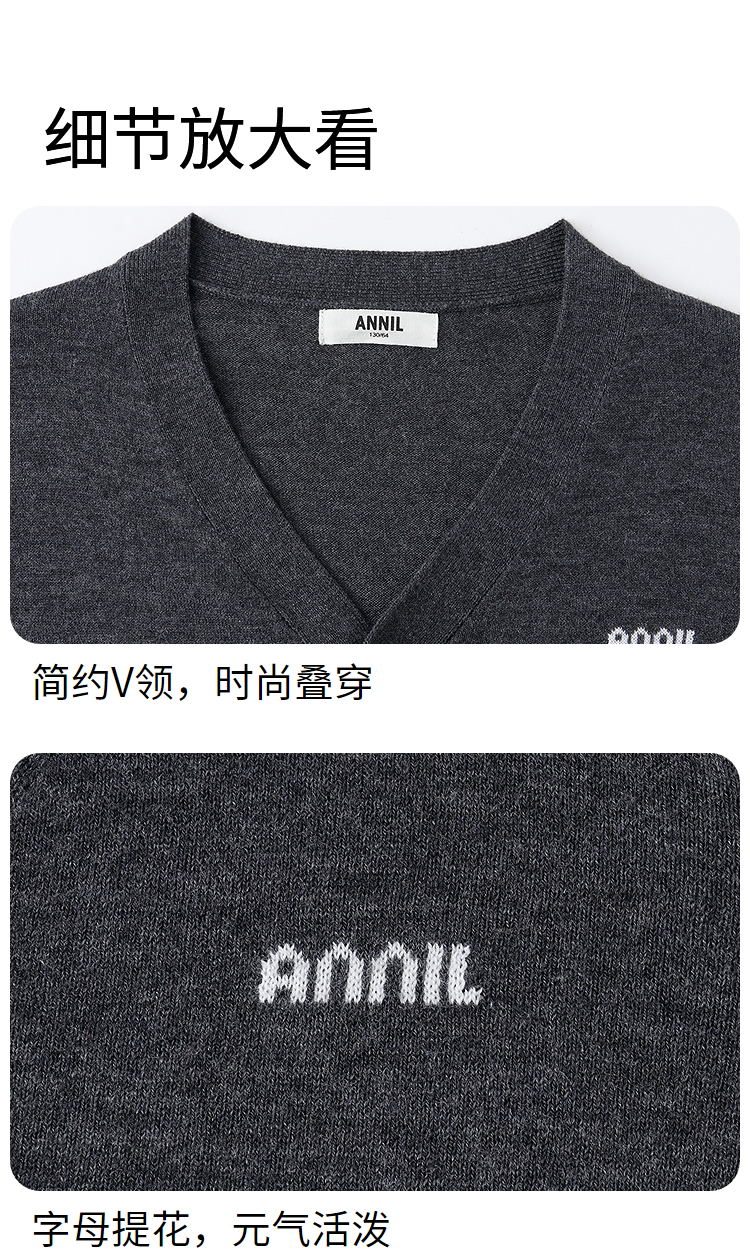 【暖“羊羊”精致毛衣开衫】男女童含羊毛细腻暖糯针织开衫春季新款安奈儿童装EM614680