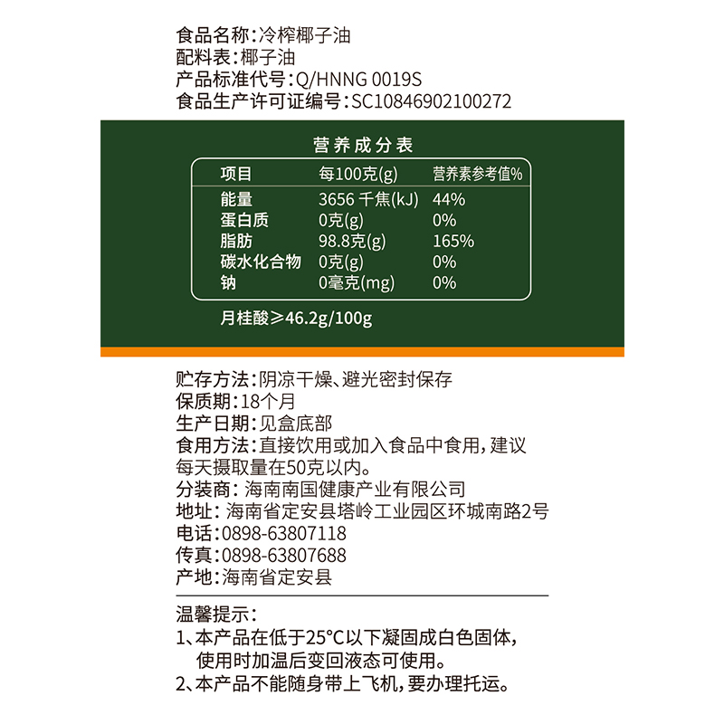 【南国食品】冷榨椰子油380g