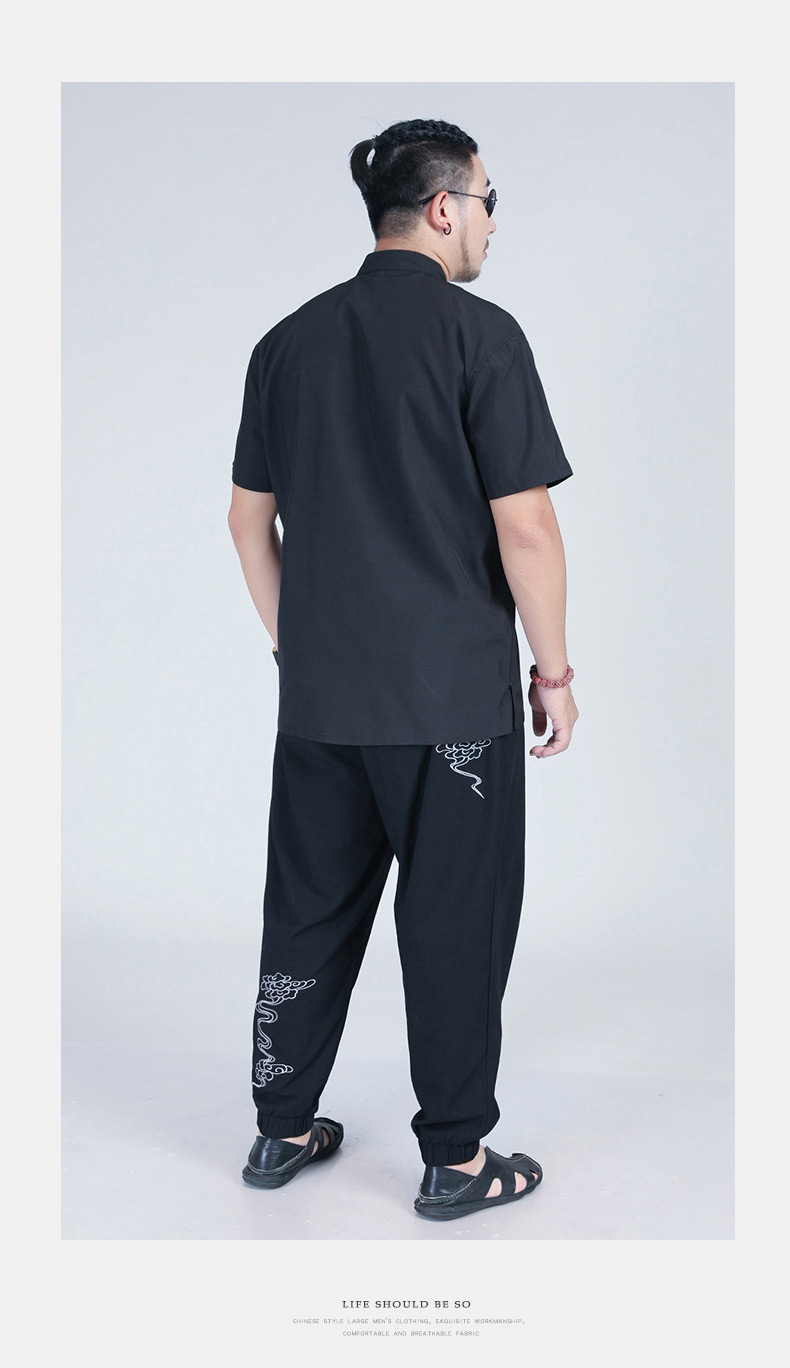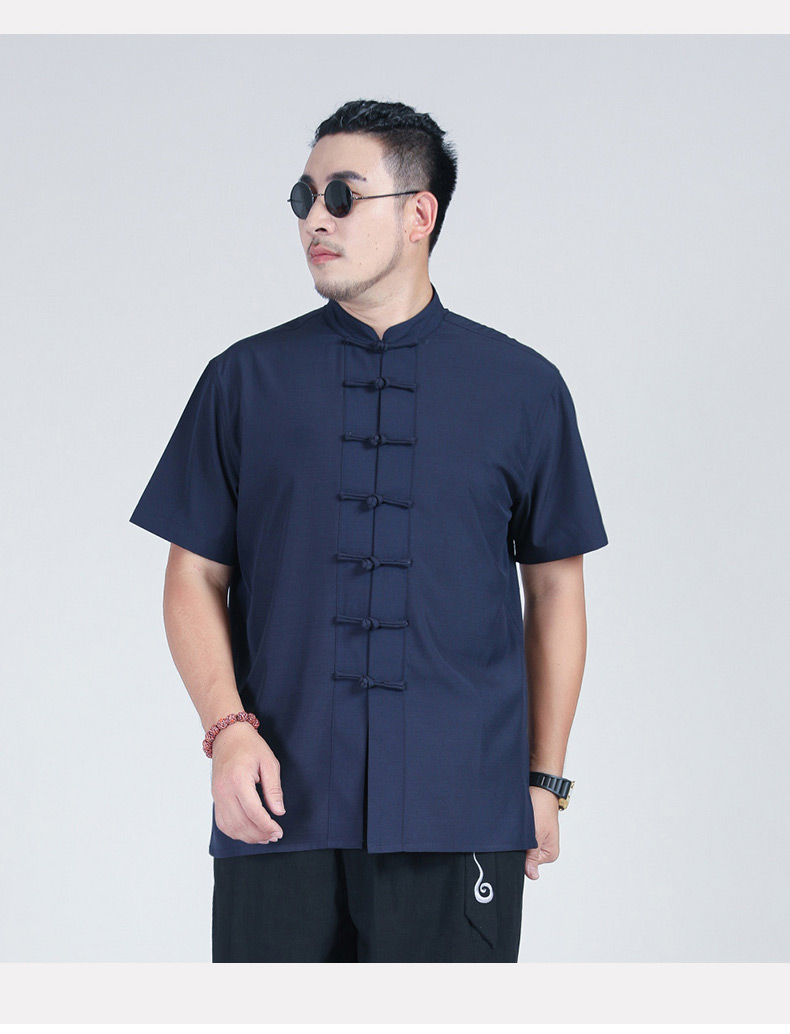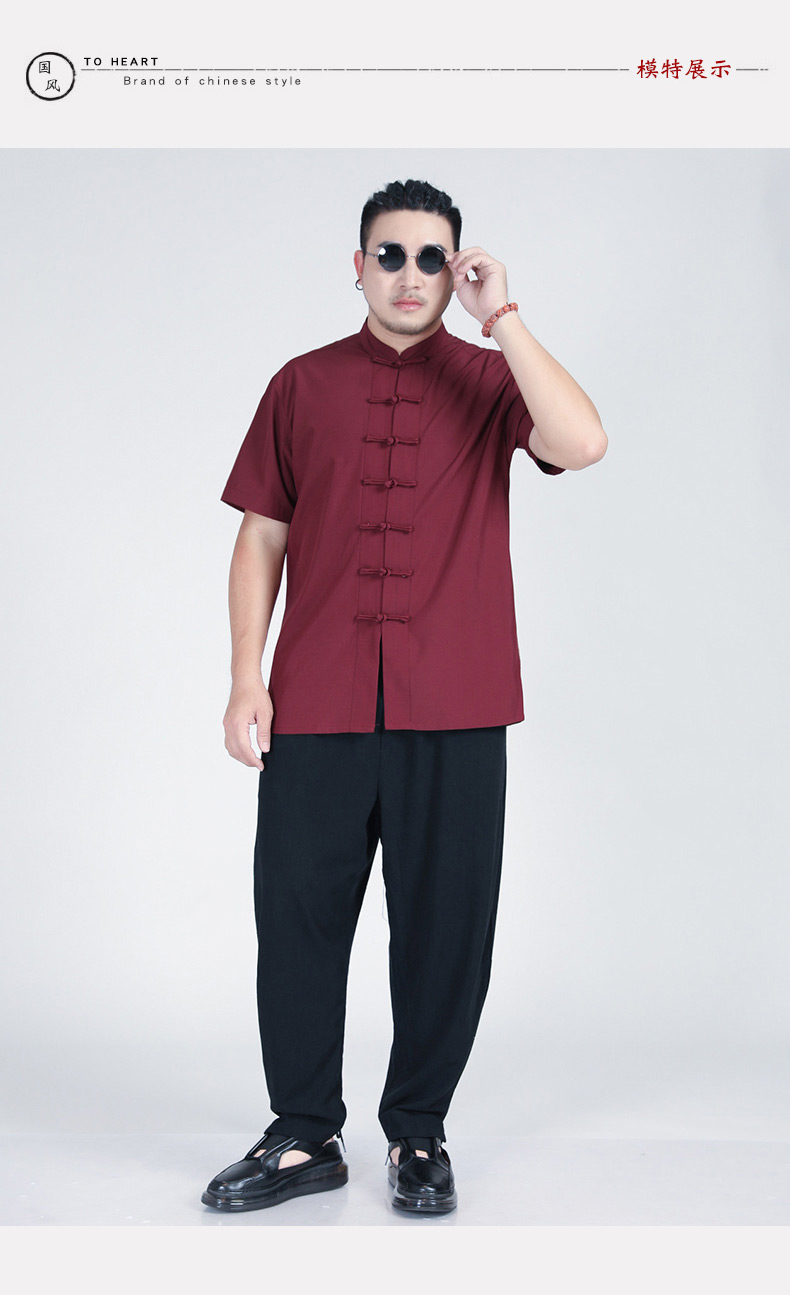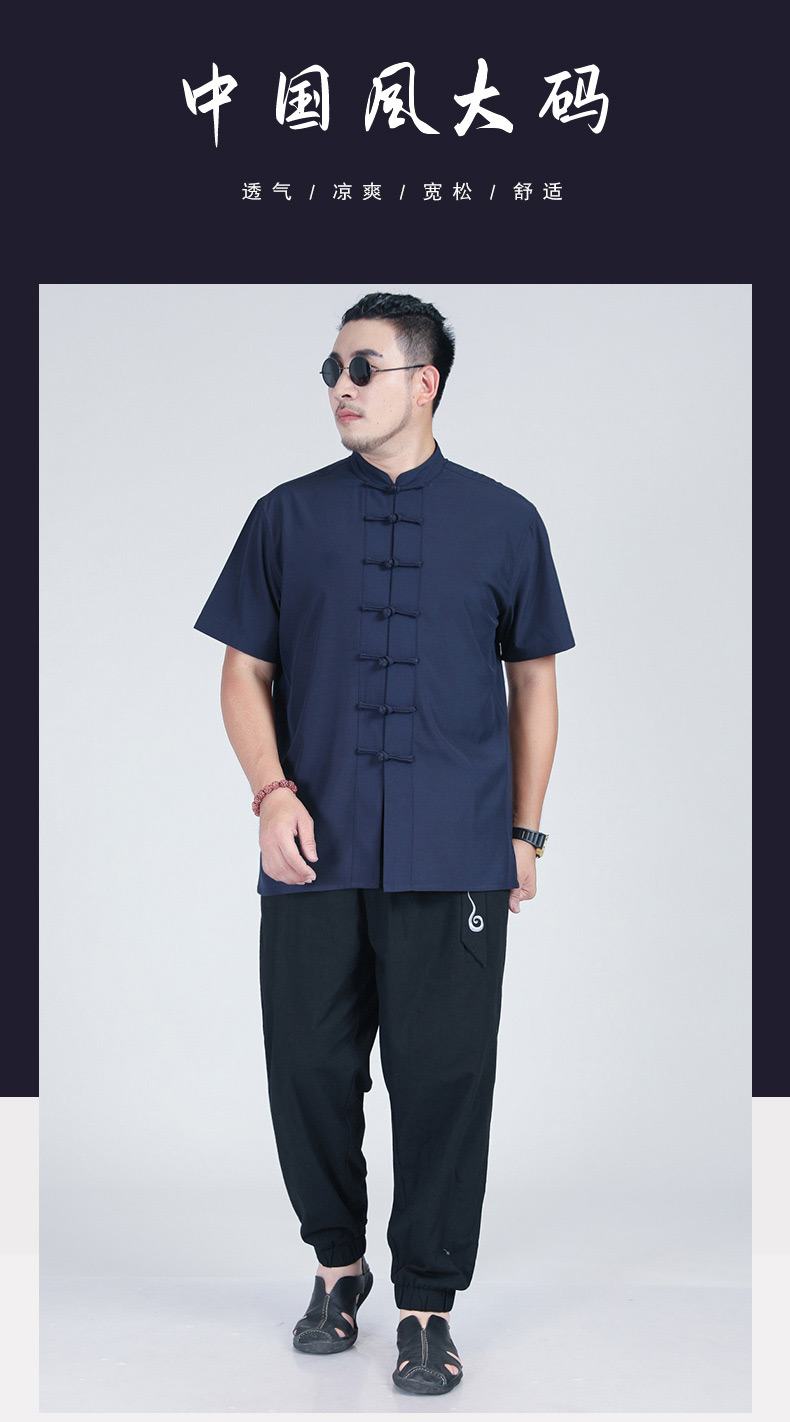 Q【DM】超大码大依优型唐装短袖衬衫时尚宽松潮流大码男装短袖半袖中国风