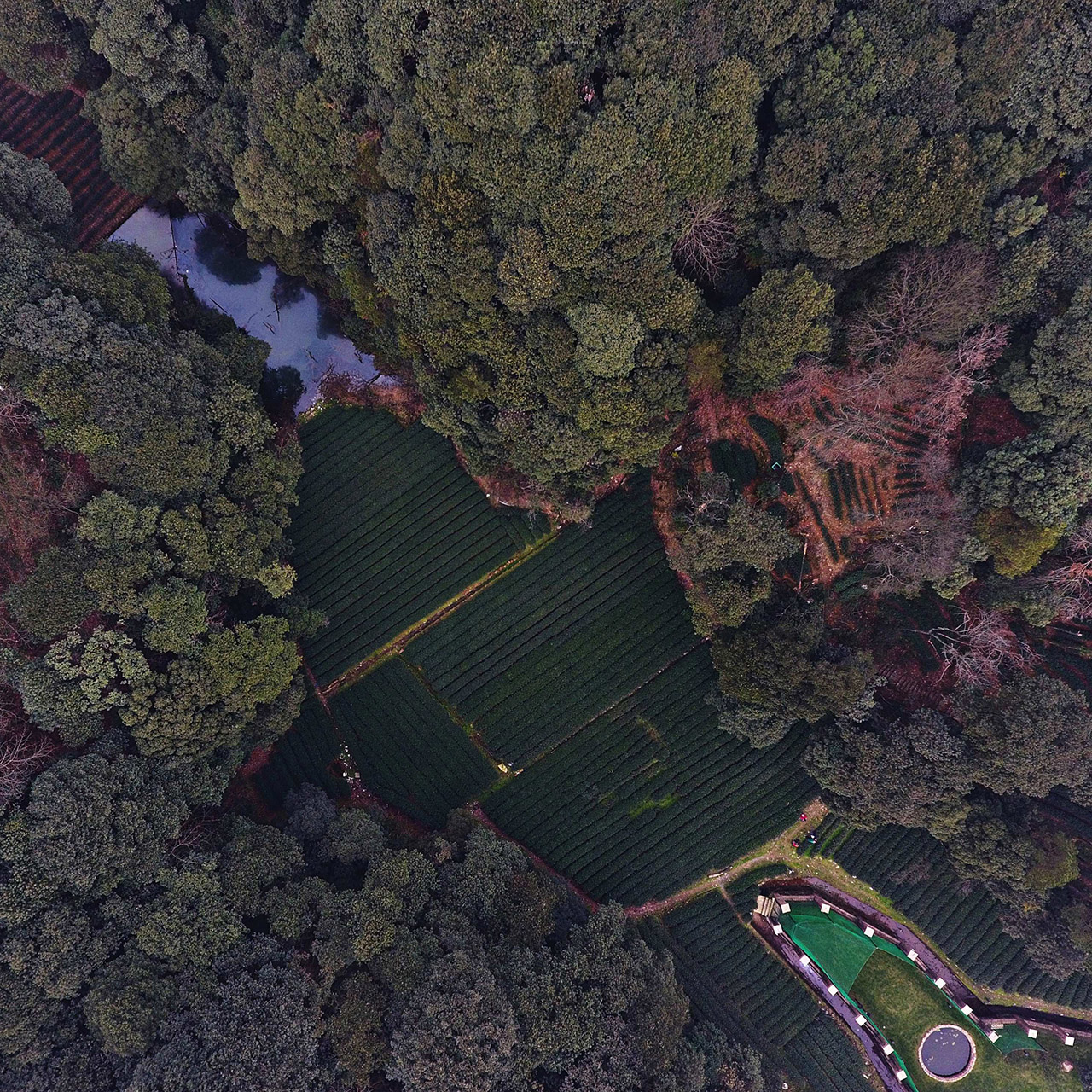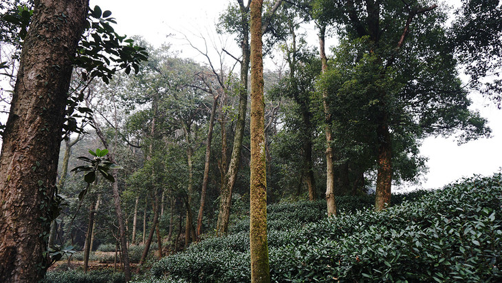 汉周严选的茶田周围都是几十年的老树,茶树和树木混合成长在一起,高大的树木为茶树提供了适宜的生长环境,树木下面生着厚厚的苔藓,这是一片难得的生态茶园。