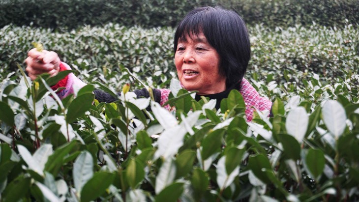 茶田的主人是西湖乡梅家坞梵村的茶农,今年朱阿姨75岁,世代在西湖边种茶,早年家里比较穷,作为长女,朱阿姨14岁起开始采茶,从上个世纪农村集体经济到承包到户家庭种茶,朱阿姨对龙井茶有不一样的感情。