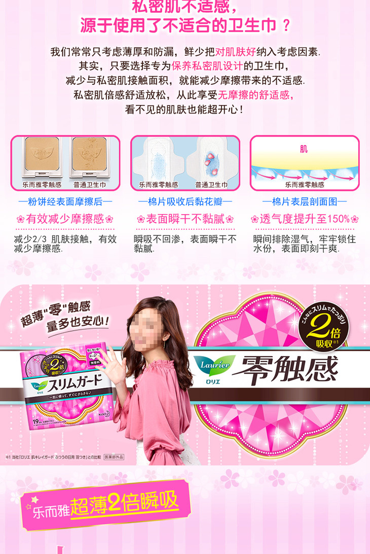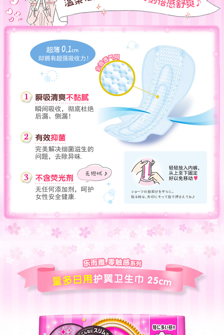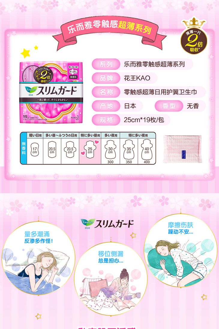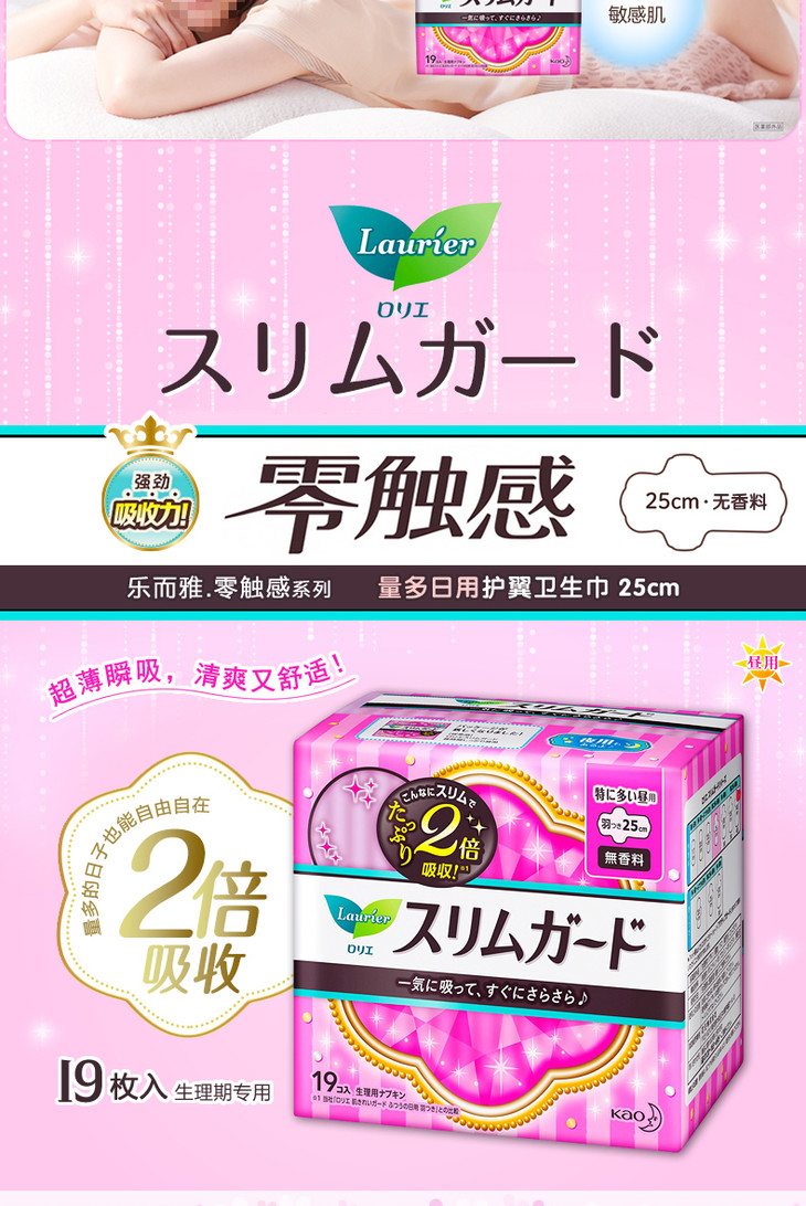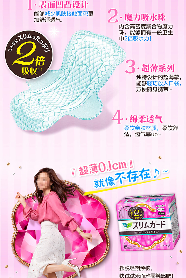 【三包装】花王乐而雅Laurier日用护翼卫生巾25cm19片