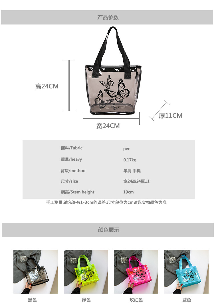 【夏季新品,轻盈时尚】休闲果冻纯色透明包 2024夏季包包 大容量女士单肩包 新款时尚托特包-QQ