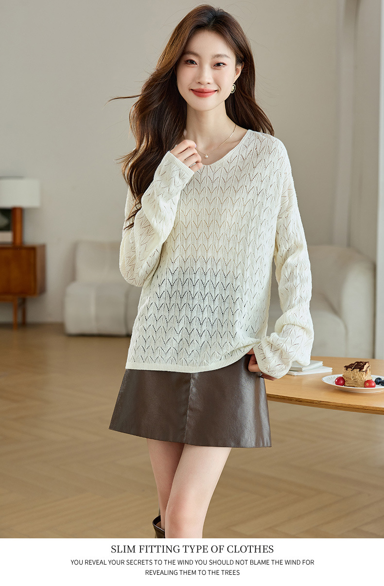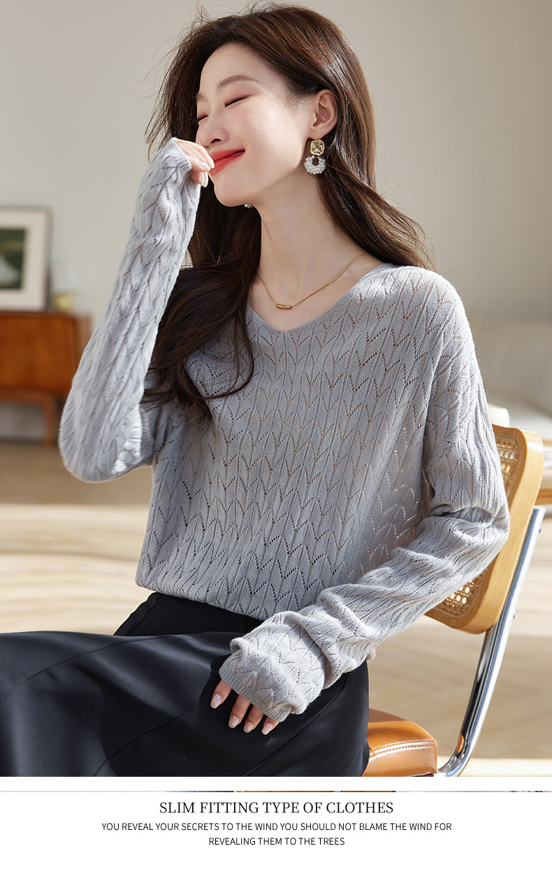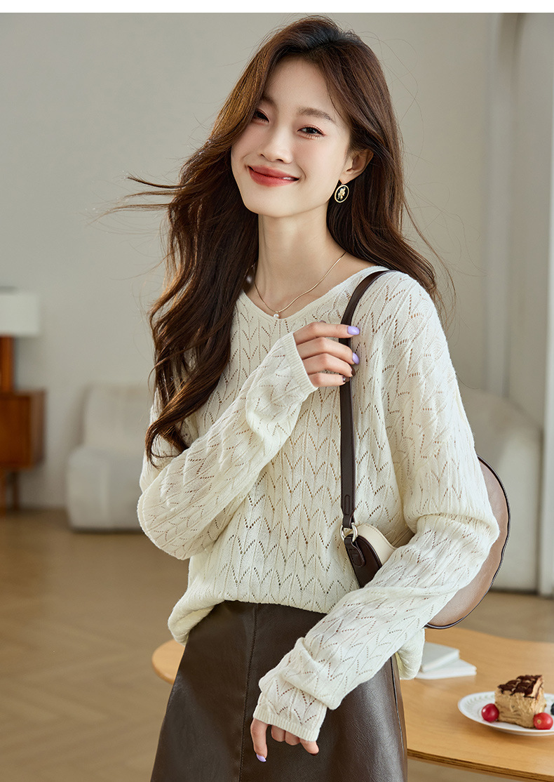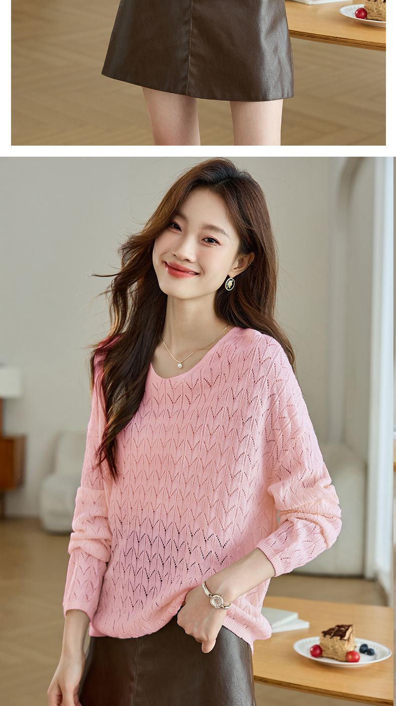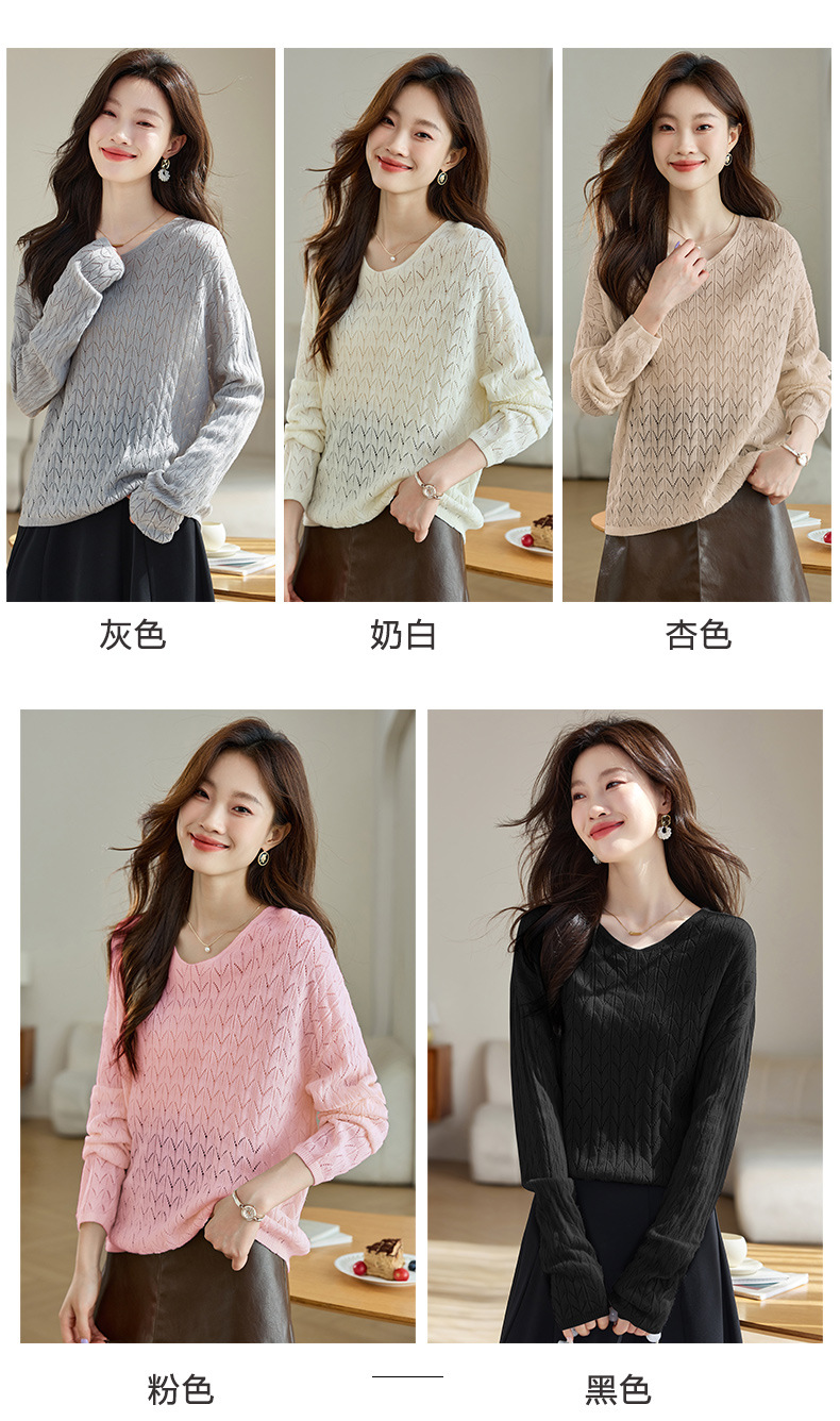 CC-AB1527针织衫女2024新款春秋鸡心领慵懒风遮肚子早秋新款宽松长袖罩衫女